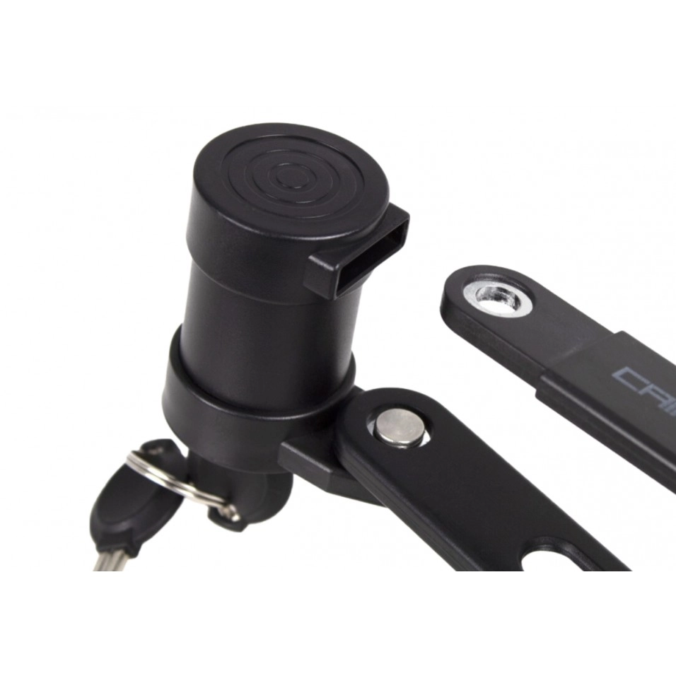 Caractéristiques: Deux systèmes de fixation au vélo. Avec vis à la place du tambour ou avec sangles. Clé de sécurité réversible avec emplacements Matériau Barres en acier trempé de 14 cm Cylindre anti-crochetage et anti-perçage Structure de barres assemblées Poids : 712g. Dimensions dépliées : 780 mm. Dimensions plié : 170 x 55 mm. Mesures de diamètre : 220 mm. |