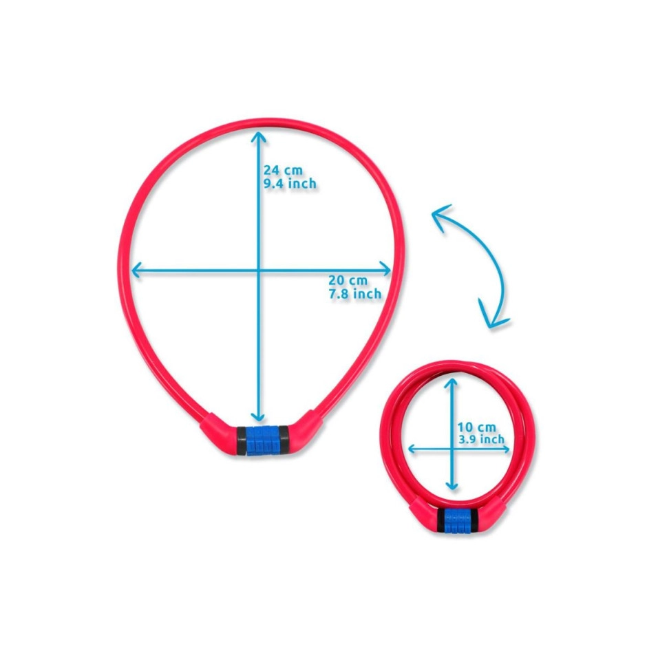 Le cadenas à code Crazy Safety 8 mm x 65 cm, coloré et pratique, est facile à transporter et à utiliser. La combinaison fixe à 4 chiffres est facile à retenir et est livrée avec une étiquette porte-clés sur laquelle est gravé le code. La serrure est en acier tressé et protégée par un revêtement en vinyle coloré qui la rend résistante aux intempéries. Sa taille est suffisamment grande pour convenir à la plupart des vélos et suffisamment petite pour être utilisée pour les skateboards, les draisiennes, les scooters, les poussettes et bien plus encore.