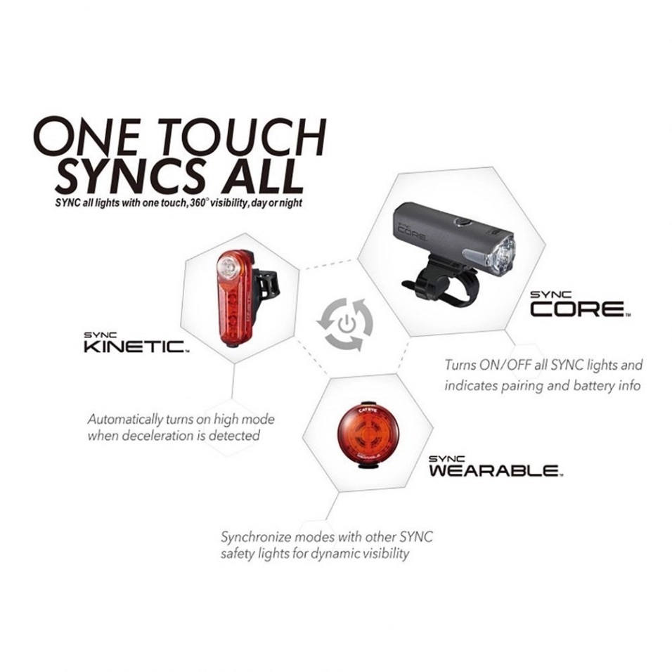 Escapa présente la gamme de feux de vélo Cateye , le feu arrière Cateye Sync Kinetic qui comprend un accéléromètre qui change de mode lorsque vous décélérez.