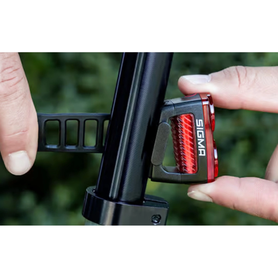 Avec le feu arrière Sigma Buster RL 150 USB avec feu stop, adaptez-vous en toute flexibilité las différentes conditions météorologiques et lumineuses. Ce phare offre un mode puissant et économique, ainsi que trois modes clignotants supplémentaires. Ce puissant feu arrière SIGMA est polyvalent, que vous recherchiez une puissance maximale pour les trajets de nuit ou un mode économique pour les longs trajets. MODES CLIGNOTANTS POUR PLUS DE SÉCURITÉ Le BUSTER RL 150 dispose de trois modes de clignotement supplémentaires pour rouler en toute sécurité, de jour comme de nuit. Le mode de clignotement diurne signale votre présence pendant six heures grâce à ses deux LED rouges clignotantes. En mode de clignotement nocturne, ce feu arrière USB offre une autonomie de 7 heures. Si votre trajet dure plus longtemps, le mode éco de 20 heures offre une visibilité accrue. FEU DE STOP POUR PLUS DE SÉCURITÉ Grâce au capteur d'accélération intégré, le BUSTER RL 150 détecte instantanément votre freinage. Les deux LED s'allument intensément pendant trois secondes lors du freinage. Cette fonction est très utile pour une sécurité accrue, de nuit comme de jour, dans les embouteillages ou en groupe. FONCTION MÉMOIRE PRATIQUE Grâce à sa fonction mémoire, le BUSTER RL 150 s'allume toujours dans le dernier mode utilisé. Une fonctionnalité très pratique pour ceux qui veulent prendre la route immédiatement. PLUS DE SÉCURITÉ GRÂCE À LA VISIBILITÉ LATÉRALE Las fentes latérales du BUSTER RL 150 permettent une visibilité à 280 degrés. La visibilité latérale est essentielle, notamment pour une conduite urbaine sûre. PUISSANT ET AVEC UNE BATTERIE RESPECTUEUSE DE L'ENVIRONNEMENT Grâce à la BUSTER RL 150 et à sa puissante batterie lithium-ion longue durée, vous n'aurez plus jamais besoin de changer de piles. De plus, vous serez encore plus éco-responsable. La lampe frontale se recharge complètement en moins de 3 heures grâce au câble USB Type-C. INDICATEUR DE BATTERIE À 3 NIVEAUX Une simple pression sur le BUSTER RL 150 vous indique l'autonomie restante. Vous pouvez ainsi passer rapidement à un mode plus économique. L'indicateur de batterie comporte trois niveaux. Ainsi, vous êtes sûr d'avoir de la lumière jusqu'au dernier moment. PETIT, MAIS SURPRENANT Mesurant moins de 5 cm de long et pesant seulement 38 grammes, ce feu arrière est compact et s'adapte parfaitement à toutes les tiges de selle. Une fois descendu de vélo, vous pouvez facilement le ranger dans votre poche. ASSEMBLAGE SANS OUTIL Un point vraiment utile : vous n'avez besoin d'aucun outil pour installer le BUSTER RL 150. Grâce à la sangle en silicone, il est facile de fixer le phare à la tige de selle. UN PHARE POUR TOUTE SITUATION Le BUSTER RL 150 est résistant aux éclaboussures conformément à la norme internationale IPX4, ce qui lui permet de résister aux averses sans problème. Ce feu arrière à piles vous accompagnera fidèlement, quelles que soient les conditions météorologiques. PROTECTION CONTRE L'ALLUMAGE ACCIDENTEL Un double-clic suffit pour rallumer la lampe frontale. Cette fonction vous permet également de ranger facilement la BUSTER RL 150 dans votre maillot ou votre sac à dos sans qu'elle ne s'allume automatiquement par inadvertance. Maintenir le bouton marche/arrêt enfoncé, sans avoir à retirer vos gants, éteint la lampe frontale. |