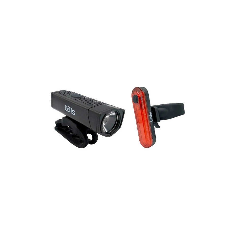 Le kit d'éclairage Tols comprend un éclairage de 350 lumens (avant) et un éclairage arrière de 10 lumens, rechargeable par USB.