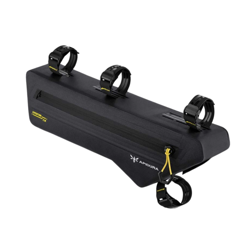 La sacoche de cadre Apidura Expedition (2,8 L) , qui se fixe solidement au cadre, contribue à centrer le poids transporté pour une conduite plus natural . Sa construction robuste et étanche est complétée par gu internes conçues pour éviter toute déformation et garantir un fonctionnement fiable en toutes circonstances. Les panneaux de fit épousent la forme des tubes pour un ajustement parfait et personnalisé. Las de stabilité en Hypalon et des bandes de silicone sur les bords de la sacoche assurent un maintien optimal. – Construction durable – Réglage stable – Rails control internes du rack – Port pour câble de chargement de l'appareil – Étanchéité par soudures Matériaux et technologie Tissu de qualité expéditionnaire :