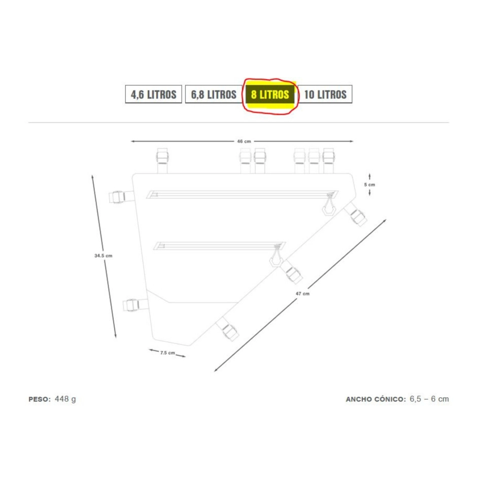 Le sac à dos Apidura Expedition Full Frame Pack (8L) que nous vous présentons chez Escapa s'adapte en toute sécurité au triangle principal du cadre du vélo, créant un espace central suffisant pour ranger des objets plus lourds sans compromettre la maniabilité natural du vélo.