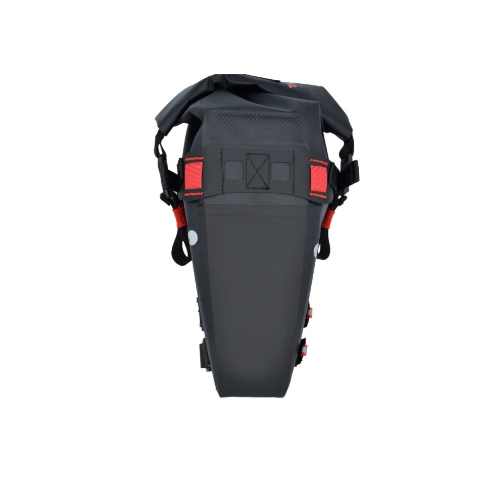 La sacoche de selle idéale pour bikepacking ultra-longue distance et léger, où l'efficacité, la légèreté et la fiabilité font toute la différence. Son nouveau design, plus léger, plus compact et plus aérodynamique, améliore la stabilité et réduit les oscillations, ce qui le rend parfaitement adapté aux courses d'ultra-distance où chaque gramme compte. Des panneaux latéraux et un fond renforcés, ainsi qu'un panneau de fond en Hypalon, contribuent à maintenir la charge stable même lorsque le sac est plein. La fermeture à enroulement assure l'étanchéité du compartiment principal, tandis que le panneau dorsal en Hypalon triple couche, doté d'encoches, permet la fixation d'un feu arrière ou de sangles supplémentaires. Les détails et logos réfléchissants améliorent la visibilité et la sécurité par faible luminosité. |