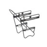 Utilisation avant pour vélos de : 26" et 28" – tous types de fourches. Montage : réglable et adaptable Supérieur : par collier ou supports V-Brakes selon la fourche (traditionnelle ou télescopique). En bas : par pince Matériau : cadre en aluminium 6061 ultra résistant. Charge maximale : 2 x 9 kg. Dimensions latérales : 300 x 295 mm. Poids selon fabricant : 750 grs. |