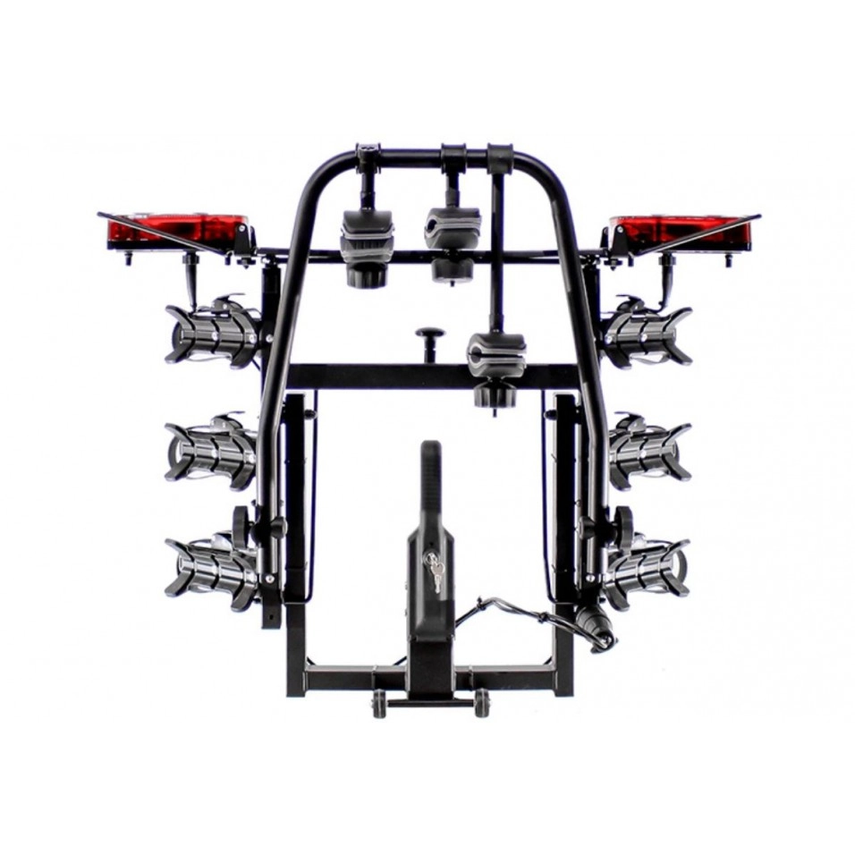 Caractéristiques: - Transporte 2 vélos - Installation rapide et facile - Serrures pour vélos et porte-vélos - Pliable pour accéder au coffre - Porte-vélos avec roulettes pour une manipulation facile - Rangement en position verticale pour une optimisation de l'espace Information technique: - Groupe optique complet (fiche 13 broches) - Charge maximale de 60 kg - Poids propre : 18,5 kg - Compatible avec les vélos jusqu'à 125 cm d'empattement - Compatible avec les pneus jusqu'à 3.0 - Pour tous les cadres en tubes ronds jusqu'à 80 mm ou tube ovale jusqu'à 80 x 55 mm - H x L x P (Plié) : 86 x 82 x 24 cm - H x L x P (Ouvert) : 70 x 100 x 77 cm -Certifications TUV et City Crash |