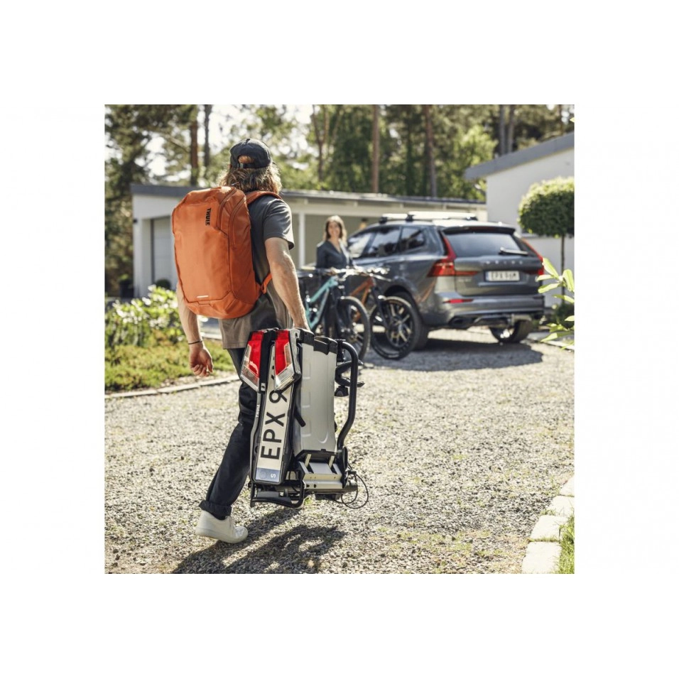 Le porte-vélos pour boule d'attelage entièrement pliable, compact et facile à utiliser avec tous les types de vélos, avec fixation pour crochet FIX4BIKE. Entièrement pliable et facile à utiliser Porte-vélos Thule EasyFold XT F pour barre de remorquage, entièrement pliable, compact et facile à utiliser ; Porte-vélos monté sur barre d'attelage pour une large gamme de vélos et de vélos électriques. Il est conçu pour les attelages FIX4BIKE. Charger des vélos lourds se fait désormais sans effort, et avec la rampe de chargement en option, c'est encore plus facile. Ce porte-vélos durable offre un accès complet au coffre lorsque les vélos sont chargés. Le porte-vélos peut être plié dans une taille compacte et rangé dans le coffre, ce qui le rend parfait pour les aventures cyclistes impromptues. Montage facile du vélo à l'aide de bras amovibles avec limiteurs de serrage verrouillables Thule AcuTight qui s'enclenchent lorsque le serrage optimal est obtenu Grande distance entre les pinces de roue permettant le transport de vélos lourds avec des empattements plus longs Boucles réglables à dégagement rapide avec longues sangles pour une fixation facile des roues (jusqu'à 4,7") permettant le transport de gros vélos Inclinable avec pédale intelligente pour un accès facile au coffre, même avec des vélos montés Transport ergonomique du porte-vélos grâce aux poignées de transport intégrées |