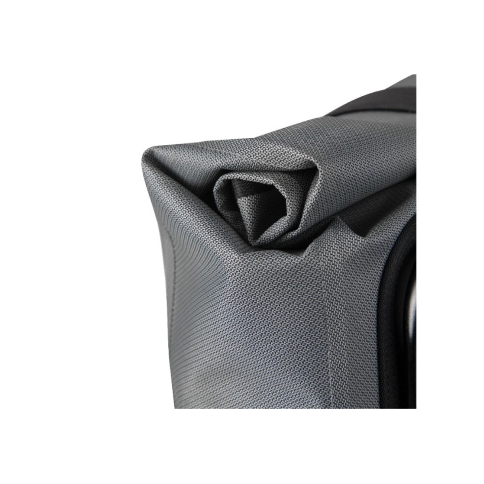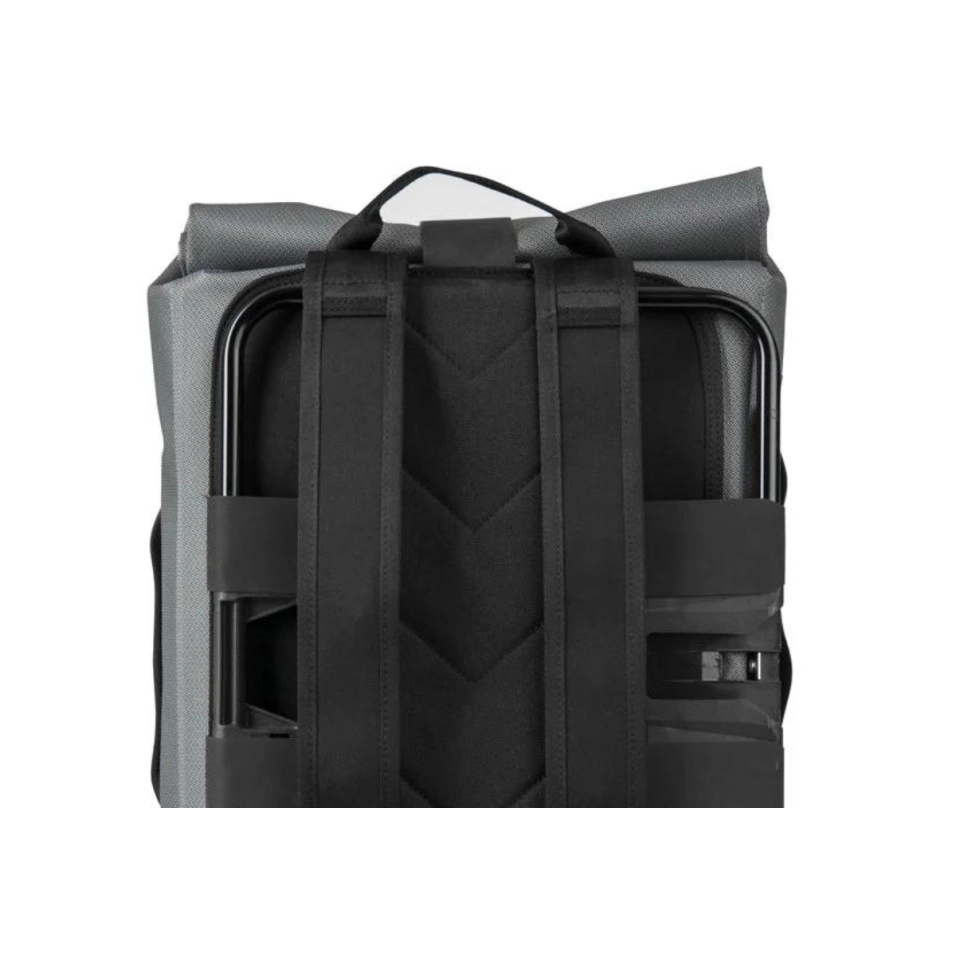 Le sac à dos imperméable Brompton Borough est doté de bretelles confortables et discrètes qui se fixent instantanément grâce à des aimants cachés lorsqu'il est temps de rouler.