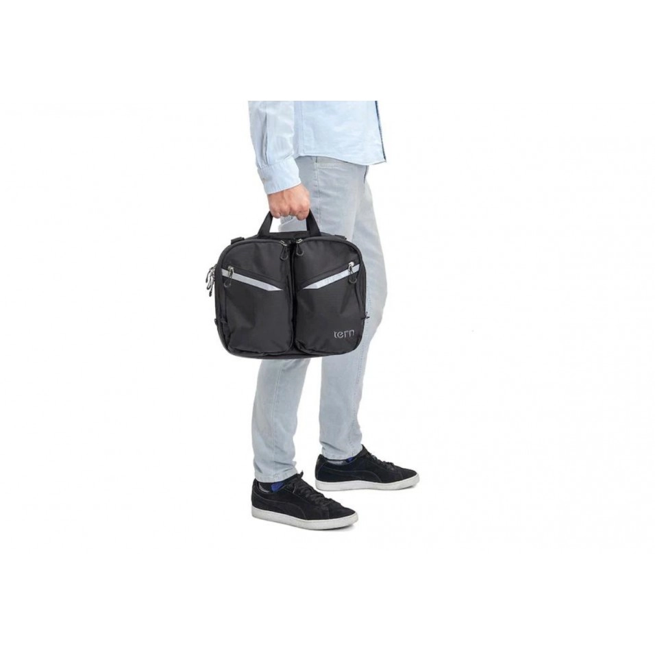 Compartiments rembourrés et fermés pour ordinateur portable et tablette 13 pouces Poches avant et intérieures pour garder vos affaires organisées Conçu avec un attelage KlickFix® encastré pour un transport confortable Fabriqué en tissu ripstop, imperméable et résistant Comprend une housse de pluie haute visibilité Bandes réfléchissantes pour une visibilité nocturne Vous avez besoin du Tern Luggage Truss pour l'attacher au vélo. CARACTÉRISTIQUES: Couleur(s) : Noir Dimensions : 340 × 280 × 95 mm Poids : 1 180 g Capacité de charge : 6kg Capacité volumétrique : 10L Vélos compatibles. Tous les vélos avec support avant pour Bagage Truss™. Articles compatibles : Bagage Truss™ CMT Porte-bagages CMT Bagage Truss™ Matériau : nylon indéchirable |