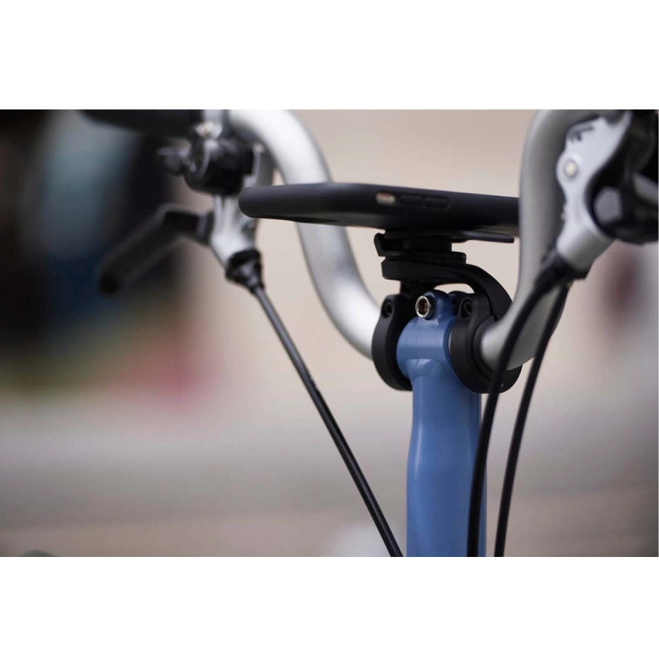 Le support mobile Brompton Quad Lock® offre un moyen stable et sécurisé de monter votre téléphone sur votre vélo, permettant à la navigation et aux notifications d'être clairement visibles pendant que vous êtes en déplacement.