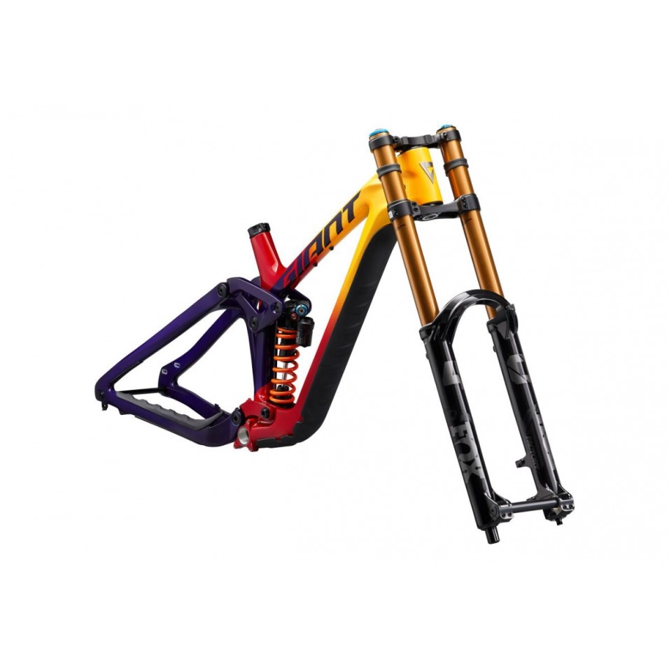 Entièrement repensé de fond en comble, le nouveau cadre Giant Glory Advanced Legends Edition 24 présenté par Escapa est un cadre entièrement en carbone super solide et léger, avec 200 mm de suspension arrière Maestro (avec une fourche de 203 mm) et plusieurs puces à modifier. la géométrie, la taille de la roue arrière, l'ajustement et le positionnement. Sa configuration de roues mixtes (Mullet) avec un avant de 29 pouces et un arrière de 27,5 pouces réalise un équilibre parfait entre vitesse et maniabilité. Les pilotes ont également la possibilité de passer à une roue arrière de 29 pouces en utilisant une simple puce à deux positions dans la patte arrière.