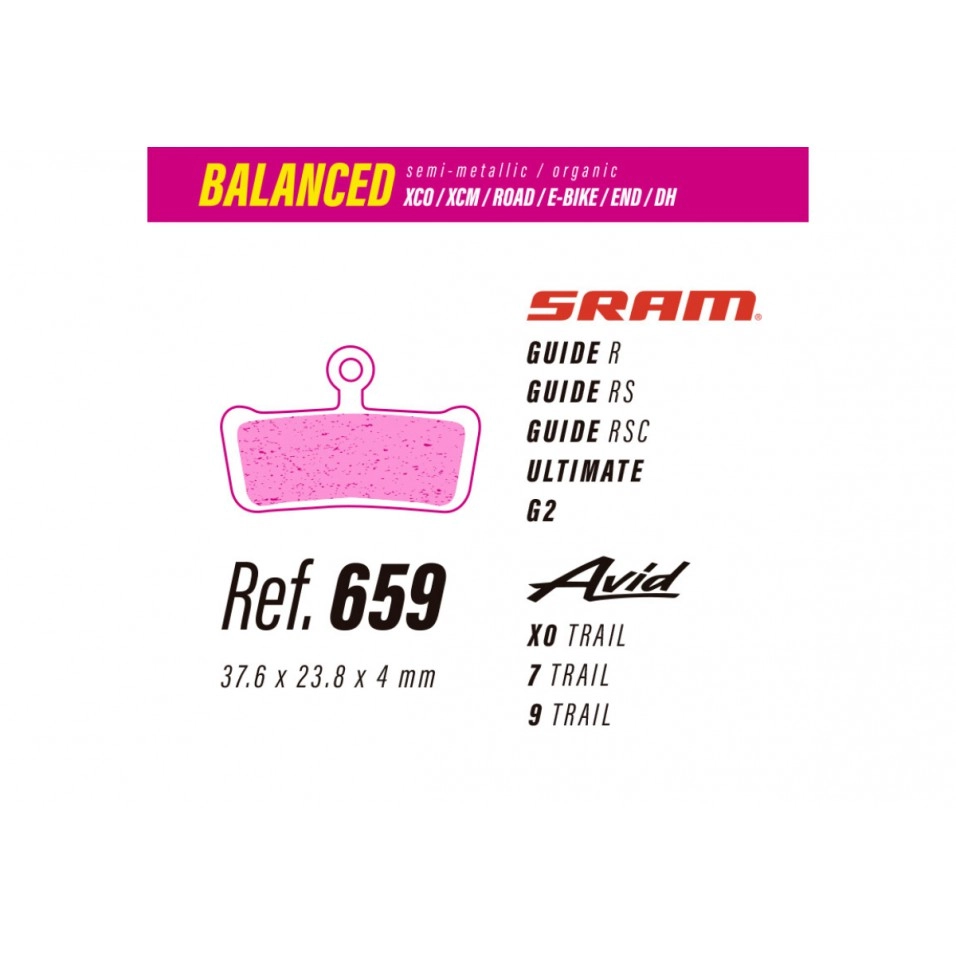 Ils sont constitués d’un pourcentage élevé de composé organique et d’un faible pourcentage de composé métallique. Grâce à cela, ils garantissent un freinage stable et contrôlé sur toute la plage de température, procurant une sensation réactive et puissante même à basse température. Freinage direct et stable Peu bruyant Ils ne nécessitent pas un rodage important pour atteindre leur efficacité. Excellent rapport qualité/prix Compatible avec: Guide Sram R Guide Sram RS Guide Sram RSC Sram Ultime Sram G2 Sentier Avid X0 Avid 7 Sentier Avid 9 Sentier |