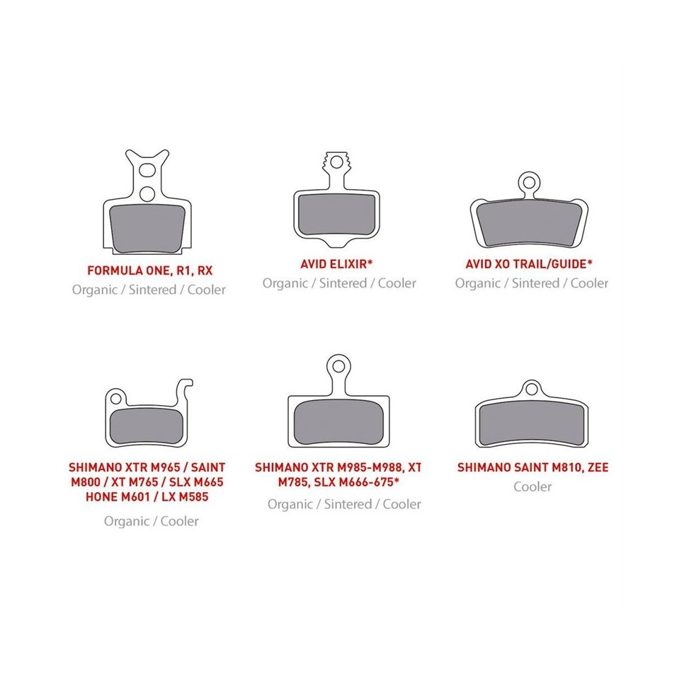 Les plaquettes de frein organiques Onoff Cooler Formula ONE R1 RX sont idéales pour les vélos VTT.