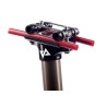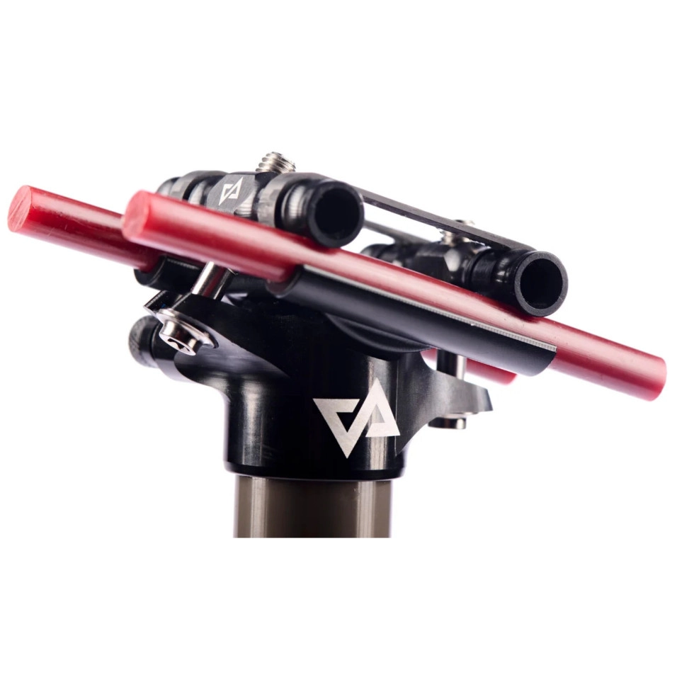 Conception spécifique à la taille pour une légèreté extrême Chaque unité est conçue sur mesure, ce qui permet un positionnement précis de la zone de serrage de la selle et une optimisation de l'épaisseur de la paroi du tube en carbone. La zone de serrage est renforcée par des fibres à 90° pour éviter l'ovalisation du tube. Résultat : un gain de poids de 15 à 30 grammes par rapport aux modèles standard. Adhérence optimisée grâce aux particules abrasives Un vernis spécial avec des particules abrasives a été appliqué sur la zone d'ancrage du cadre pour améliorer l'ajustement sans nécessiter de serrage excessif, garantissant ainsi la stabilité dans les conditions les plus exigeantes. Nouveau système d'ancrage de selle Carbolink® Inspiré du design éprouvé de type Thomson , le nouveau système Carbolink® allie fiabilité et légèreté d'un système d'attache monomode. Il utilise des sangles en fibre de carbone pour relier les attaches et permettre la rotation. Il intègre une visserie M6 personnalisée, permettant un gain de poids supplémentaire de 14 grammes par rapport au modèle HELIUM original. Finition miroir anodisée dure natural Le tube en aluminium est doté d'une élégante finition anodisée dure natural , qui non seulement met en valeur sa teinte éclatante, mais offre également une protection supérieure contre l'usure et la corrosion. Sa faible rugosité assure également une glisse optimale. Pression de service : Fonctionne entre 6 et 10 bars Verrouillage : deux positions Diamètre : 30.9mm Course : 60, 90 et 120 mm (selon le modèle) Non inclus : Télécommande Changer la couverture |