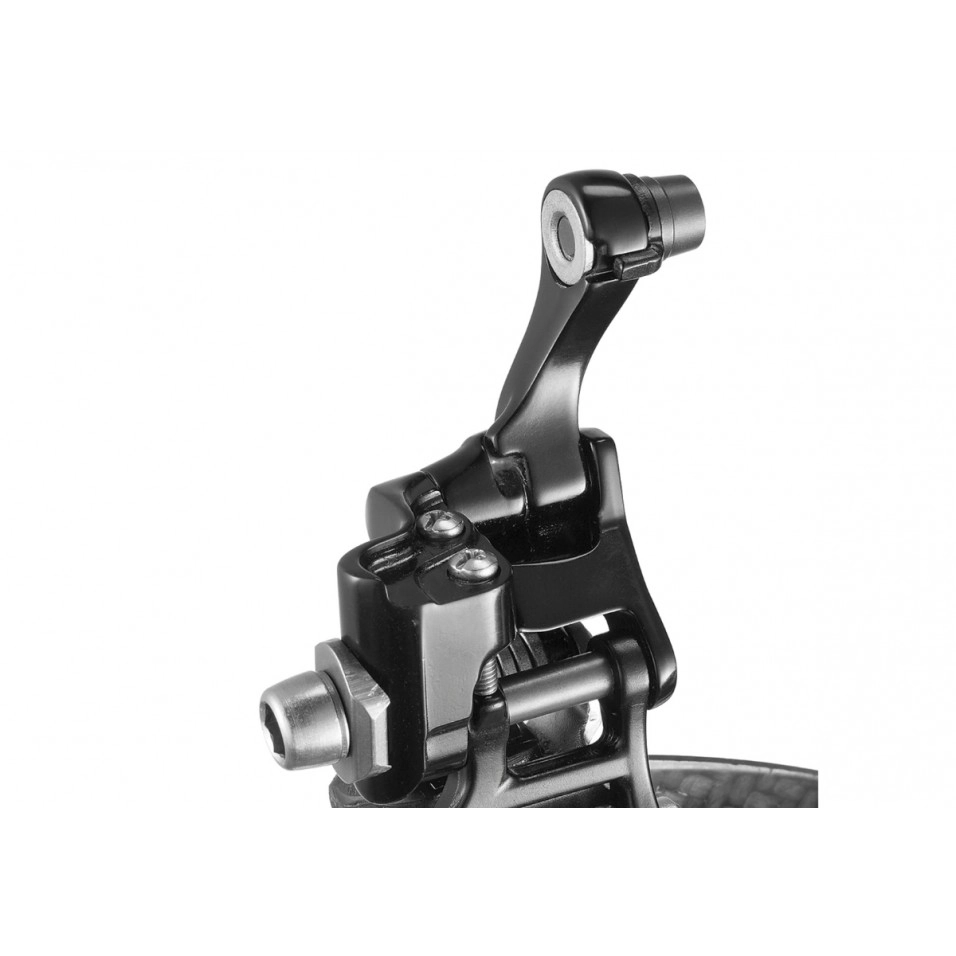 Le dérailleur sans serrage Campagnolo Super Record 12V présente de nombreuses innovations techniques, à commencer par le système de levier conçu pour accélérer le dérailleur. L'effort nécessaire pour effectuer la déviation est moindre grâce à la bielle avant divisée qui évite le contact avec la vis de limite. Alors que la forme de la demi-fourche interne est conçue pour garantir une préparation maximale à la dérive en montée, le monolithique externe, grâce à sa composition en fibre de carbone, a une forme qui améliore l'efficacité du mouvement ascendant de la chaîne et sa vitesse et fluidité en descente. .