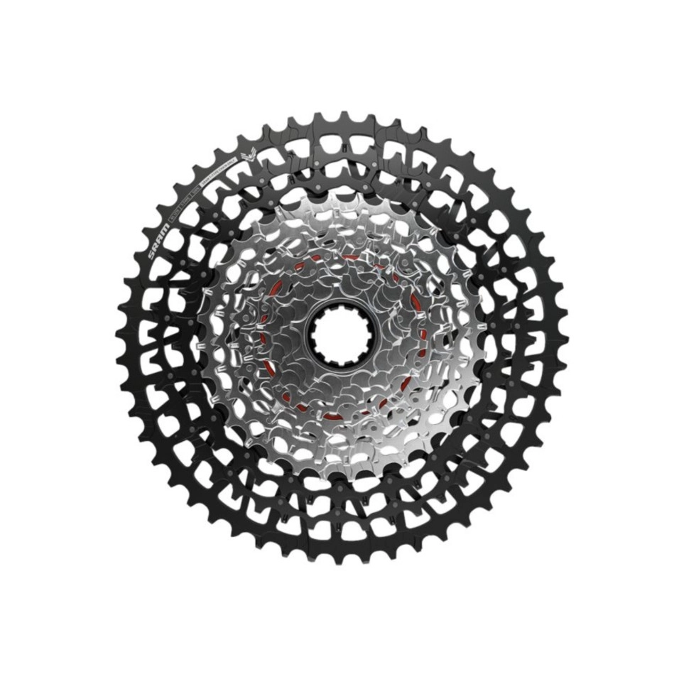 Doté de la même architecture de dérailleur Full Mount que ses frères et sœurs à transmission AXS, il est indéniablement robuste. Et juste au cas où, le corps du dérailleur est doté de maillons parallélogrammes intérieurs et extérieurs remplaçables, de plaques coulissantes et d'un assemblage de cage filetée sans outil, ce qui en fait le dérailleur le plus reconstructible que nous ayons jam fabriqué. Au cœur du système se trouve un plateau E-MTB en aluminium forgé élégant et robuste, doté d'un plateau de type T spécifique à la transmission. Le changement de vitesse sous charge est l'une des las d' Eagle Transmission, et cela est rendu possible sur le 90 avec une cassette XS-1275 T-Type intégrant la technologie X-Sync et un levier de vitesses mécanique à double clic T-Type Actuation haut de gamme.