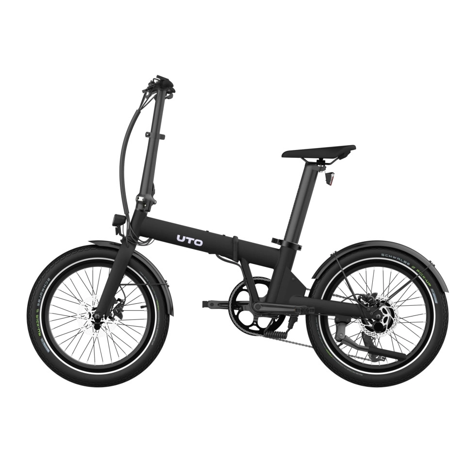 Le vélo électrique UTO OG20 2026 est conçu pour être le modèle pratique, maniable et léger de notre gamme de vélos électriques UTO. Idéal pour les courts trajets, il se prête parfaitement à la combinaison de différents modes de transport. Il se plie en 10 secondes, pèse 20,3 kg* avec sa batterie et offre une autonomie jusqu'à 70 km. *Poids sans pédales Plus efficace qu'un cadenas Conçu pour être toujours à portée de main, où que vous soyez, il ne nécessite aucune surveillance. Facile à ranger, il se glisse aisément dans un coffre de voiture, un appartement ou sous un bureau. Son format compact vous accompagne partout, à l'intérieur comme à l'extérieur. Batterie pratique, esthétique et sûre Conçue pour simplifier votre quotidien, cette batterie est entièrement amovible et intégrée à la tige de selle pour une recharge facile où que vous soyez. Elle peut être sécurisée par une clé grâce à un système de fixation antivol. Cet accessoire est inclus et préinstallé à l'achat. Son autonomie peut atteindre 70 km. Assistance fiable Conçu pour une conduite sans contraintes. Équipé d'un moteur sur la roue arrière délivrant un couple de 40 Nm (équivalent à 75 Nm avec un moteur intégré au boîtier de pédalier), d'un capteur de couple et de 7 vitesses. Conçu pour être dynamique et réactif, il facilite les déplacements urbains. Phare avant Conçu avec un éclairage optimal, facilement contrôlable depuis l'ordinateur de bord. Pour une visibilité parfaite de jour comme de nuit. Freins hydrauliques Équipé de freins à disque hydrauliques pour un freinage progressif et efficace par tous les temps. Bandes réfléchissantes Pneus SCHWALBE pour pick-up avec bandes réfléchissantes, choisis pour garantir votre sécurité en toute simplicité. Autonomie : jusqu'à 70 km Durée de vie : 1000 cycles de charge Temps de charge : 4 à 5 h Vitesse maximale : 25 km/h Poids : 20,3 kg avec batterie Dimensions pliées : 85 x 66,5 x 45 cm Taille de l'utilisateur : 1,50 m - 1,90 m Charge maximale (utilisateur + bagages) : 130 kg |