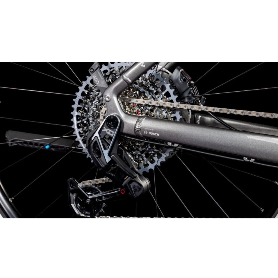 Le Cube Nuride Hybrid SLT 800 Allroad 25 est un vélo de trekking électrique haut de gamme, conçu pour offrir des performances exceptionnelles aussi bien en ville que sur les routes rurales. Caractéristiques: - Cadre en aluminium Superlite : Robuste et léger, conçu pour offrir une conduite fluide et efficace. - Moteur Bosch Performance Line CX : Fournit une assistance puissante et douce, idéale pour franchir les pentes et les longs trajets, même avec une charge. - Batterie Bosch PowerTube 800 : D'une capacité de 800Wh, elle offre une autonomie exceptionnelle, vous permettant d'effectuer des trajets plus longs sans craindre de manquer d'énergie. - Fourche Fox 34 Float AWL : Avec un débattement de 100 mm, cette fourche à suspension de haute qualité absorbe les impacts du terreno , améliorant ainsi le confort et control . - Transmission Sram X0 Eagle AXS™ : Cette transmission électronique à 12 rapports offre des changements de vitesse précis et fiables, même dans las conditions les plus difficiles. - Freins Magura Gustav PRO : Ces freins à disque hydrauliques à 4 pistons offrent une puissance de freinage exceptionnelle dans toutes les situations. - Roues de 28 pouces : Elles offrent un équilibre entre confort et efficacité, idéales pour rouler sur des terrains variés. Technologies : - Bosch Smart System : Intègre le moteur, la batterie et l'écran control , offrant une expérience de conduite connectée et personnalisée. - Écran Bosch Kiox 500 : Fournit des informations détaillées sur le voyage, la navigation et la connectivité avec votre smartphone. - Intégration complète de la batterie : La batterie est entièrement intégrée au cadre, améliorant ainsi l'esthétique et la protection. - Acheminement interne des câbles : Les câbles sont complètement cachés dans le cadre, ce qui réduit la friction, améliore l'esthétique et facilite le nettoyage. |