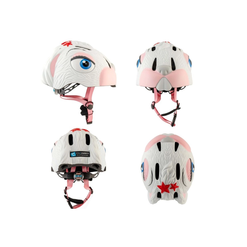 Le casque Crazy Safety Rabbit convient aux enfants de 2 à 7 ans. Tous les casques Crazy Safety sont fabriqués à partir de mousse EPS légère et de haute qualité. Taille réglable grâce au système de réglage interne qui fait passer la taille du casque de 49 cm à 55 cm. Le voyant de sécurité à LED rouge à 3 fonctions est intégré au système de réglage interne avec une molette rotative et la batterie est facile à changer. 6 grands trous d'aération à l'avant, en haut et à l'arrière assurent une bonne circulation de l'air. Tous les casques Crazy Safety sont livrés avec une lumière, une mentonnière de protection, des sangles de couleur assortie et des coussinets intérieurs amovibles et lavables. Le casque Crazy Safety Rabbit est idéal pour faire du vélo, du skateboard, du scooter, de la draisienne et des patins à roulettes.