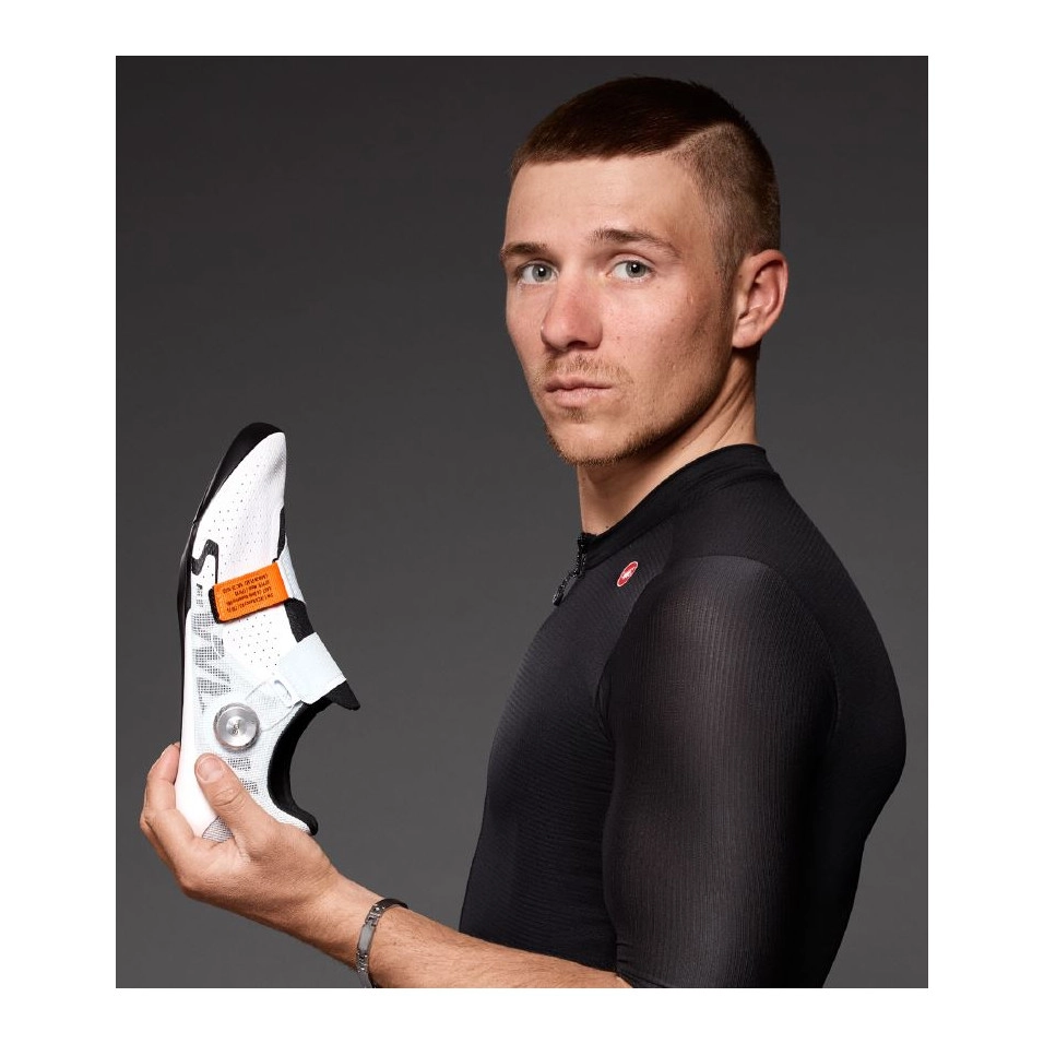 Développées en collaboration avec Remco Evenepoel pendant huit mois intenses, las chaussures Specialized S-Works Torch Remco sont las plus légères du peloton professionnel, avec un poids impressionnant de 148,2 grammes (pointure 41). Oui, on compte les grammes à la décimale près. Et oui, on sait que c'est presque obsessionnel. Mais c'est ainsi que, avec Remco, nous avons obtenu une chaussure qui pèse 3 grammes de moins que sa concurrente la plus proche.