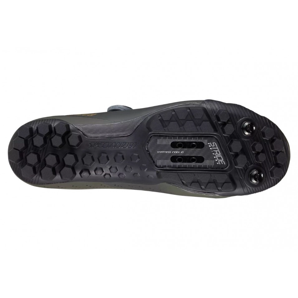 Vous recherchez la performance sur le vélo et quand il faut mettre le pied à terre ? La Recon 3.0 possède une semelle en carbone avec une fibre de verre inspirée de la technologie Pavé présente dans nos tiges de selle pour créer la technologie STRIDE toe-flex, qui permet au pied de bouger librement lors de la marche, mais permet de transférer toute la puissance à travers les pédales avec un indice de rigidité de 10.0.Ya Que ce soit pour heurter le sol sur une colline ou pour se rendre à la brasserie après votre sortie, la technologie STRIDE Toe-Flex a changé les règles du jeu. Nous savons que se lancer dans vos aventures signifie entrer dans l'inconnu, c'est pourquoi nous avons équipé le Recon 3.0 d'un tissu XPEL qui repousse l'eau et sèche aussi vite que vous roulez. Le composé de caoutchouc Slipnot sur la semelle vous offre la meilleure traction sur tous les terrains, avec une semelle large pour repousser la boue. Le BOA L-6 -Snap ainsi que le Velcro à l'avant-pied offrent un confort avec un ajustement idéal pour performer toute la journée, que ce soit sur un parcours de gravier, sur un sentier ou lorsque vous posez le pied sur de la terre. Caractéristiques: . La technologie Body Geometry vous permet de donner un maximum de puissance, d'augmenter l'efficacité et de réduire le risque de blessure en alignant l'axe de la hanche, du genou et du pied. . La technologie STRIDE toe-flex donne au pied une liberté de mouvement lors de la marche et maintient la rigidité lors du pédalage. Indice de rigidité : 10,0 . La tige de la chaussure comporte moins de coutures pour un plus grand confort. . Fermeture BOA® L6-Snap pour un micro-ajustement à la volée. . Semelle extérieure en caoutchouc SlipNot™ pour une meilleure traction sur tous les terrains. . Cales à deux boulons pour s'adapter à la plupart des pédales de montagne. . Poids approximatif : 355 grammes (Taille 42) |