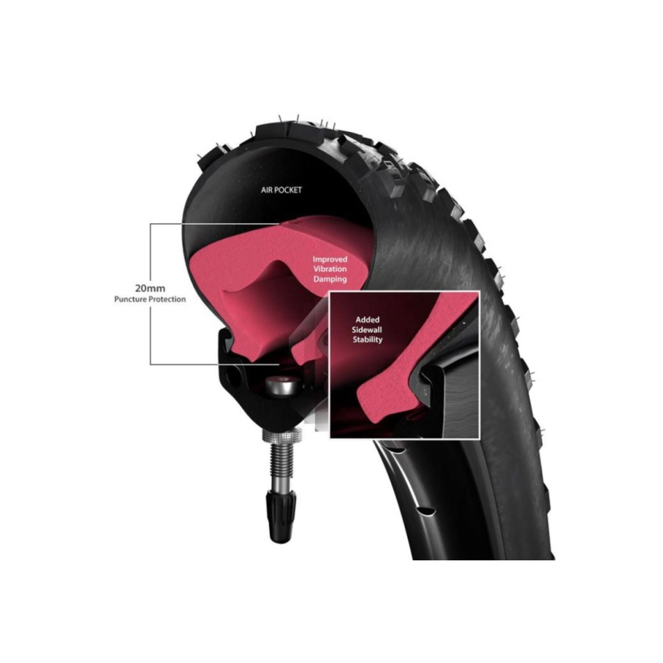 CARACTÉRISTIQUES: La largeur minimale de la jante intérieure requise pour installer les inserts est de 19 mm. La conception unique Armor Tubeless offre une conduite plus rapide et une absorption des chocs inégalée. Les ailes latérales flexibles offrent une stabilité dans les virages et une protection des bords. Si vous avez une crevaison, vous pouvez toujours conduire pendant une période limitée. Absorbe jusqu'à 50 % d'impacts et de vibrations au sol en plus Il n'absorbe pas le liquide de scellement, conservant ainsi la légèreté de la mousse tout au long de sa durée de vie. Permet de rouler à (10 km/h) sans endommager le pneu en cas de crevaison Installation facile en seulement 5 minutes |