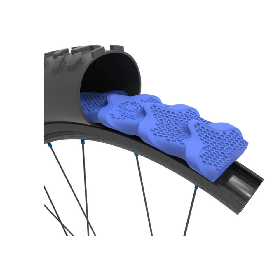 Les canaux latéraux sont façonnés pour créer un effet Venturi, ce qui signifie que le flux d'air à travers les canaux augmente en vitesse à mesure que les canaux deviennent plus petits. C'est le même principe que l'effet de sol des voitures de Formule 1, et est nécessaire pour accélérer l'air de l'extérieur de l'insert vers l'intérieur, entre l'insert et la base du pneu. L'air est emprisonné dans la partie intérieure et met beaucoup plus de temps à retourner vers la partie extérieure, laissant au moment de l'impact très peu d'air au point d'amortissement. Les alvéoles sur le dessus de l'insert, inspirées de celles des las de golf, ainsi que la forme ondulée, aident l'air à ne pas rebondir vers le pneu provoquant un fort effet de rebond, mais plutôt à s'écouler dans les canaux latéraux. Résistance au roulement : des tests effectués par des tiers ont montré que le RR sur des surfaces rugueuses est réduit jusqu'à 9 %. Même en tenant compte du poids supplémentaire las inserts, cela entraîne toujours une vitesse de montée plus élevée. Pression au sol des pneus : 60 % plus élevée, ce qui porte la traction à un tout autre niveau. Amortissement las : 55 % supérieur. Moins de fatigue et une conduite plus stable. Durabilité: Tubolight Diamana est fabriqué en mousse EVA à cellules fermées haute densité. La densité et la dureté doivent être très élevées pour conserver la forme lors de l'utilisation et assurer un flux d'air constant entre les canaux. Il en résulte l'insert le plus durable jam fabriqué, avec des années de vie avant de devoir être remplacé, même après de longues utilisations à plat. Facilité d'utilisation : Diamana est un appareil facile à utiliser. L'installation est très simple. Associé aux inserts EVO, il est garanti 100% sans aucun mastic du marché et ne nécessite pas de valves spécifiques. Diamant XHD Nouveau composé extra résistant et dur conçu pour fonctionner spécifiquement avec les pneus robustes à double épaisseur. Applications : enduro , descente, vélos électriques. Poids : 220 grammes (29") |