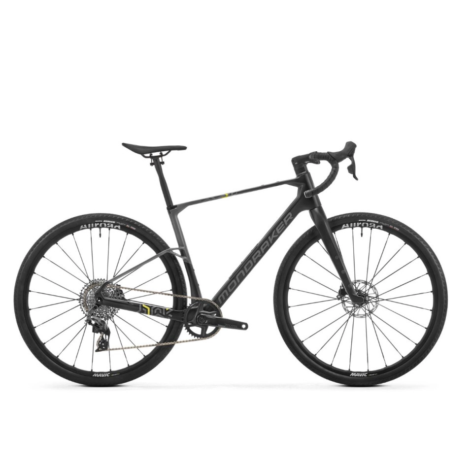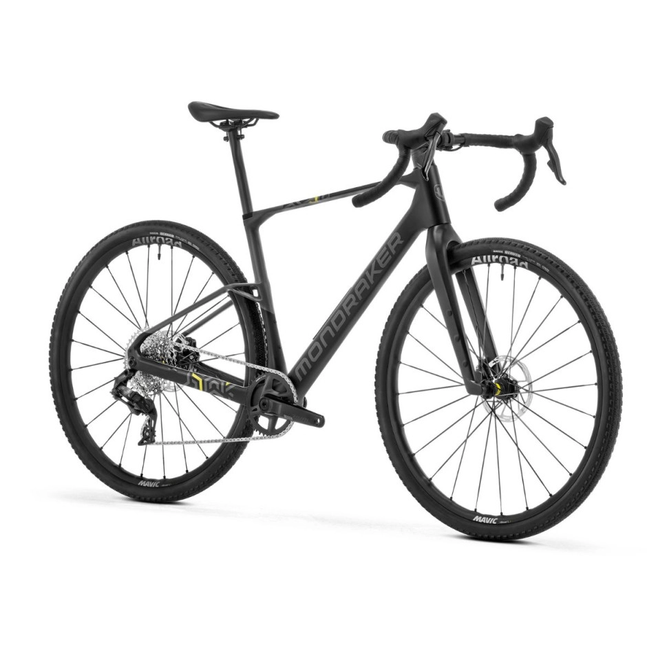 Le vélo Mondraker Arid Carbon R 25 est le primer modèle doté de la transmission AXS de SRAM avec la gamme Rival Etap , avec un plateau 40 et une cassette 12 vitesses (10-44). Las roues sont las Allroad SL avec une largeur Mavic de 25 mm en combinaison avec des pneus Maxxis Reaver de 45 mm.