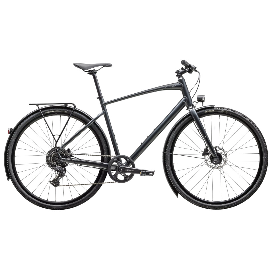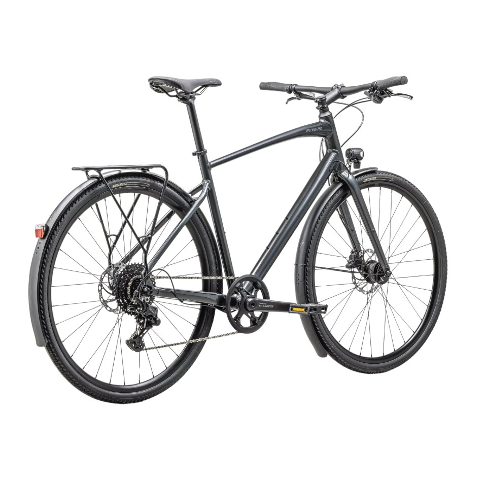 | Cadre Specialized A1 Premium Aluminum, Fitness Geometry, butted tubing, internal cable routing, flat-mount disc, quick-release, Plug + Play rack/fender mounts |