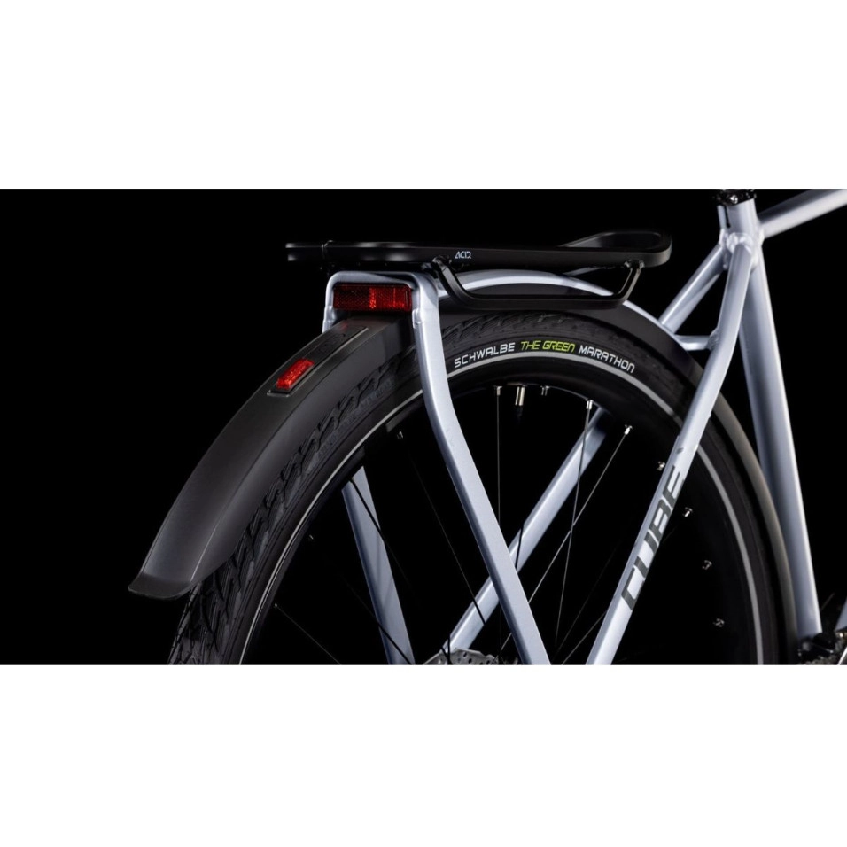 Le Cube Kathmandu Pro 25 est une excellente option pour ceux qui recherchent un vélo hybride polyvalent et confortable, idéal aussi bien pour les déplacements urbains que pour les excursions en dehors de la ville. Il combine un design élégant avec des composants de haute qualité pour offrir une expérience de conduite fluide et efficace. Caractéristiques: Cadre en aluminium Superlite : Le cadre Kathmandu Pro est construit en aluminium de haute qualité, ce qui le rend à la fois léger et résistant. Géométrie Trekking Comfort : Cette géométrie offre une position de conduite droite et confortable, idéale pour les longues randonnées. Fourche Suntour NCX D LO Air : La fourche à suspension vous offre une conduite en douceur et absorbe les impacts des las terreno . Transmission Shimano Cues 2x10 : Avec 20 vitesses, cette transmission vous offre une large gamme de vitesses pour affronter tout type de pente. Freins à disque mécaniques Shimano MT200/UR300 : Les freins à disque mécaniques offrent une puissance de freinage fiable dans diverses conditions. Technologies : Aluminium Superlite : Ce matériau de haute qualité garantit un cadre léger et résistant. Géométrie Trekking Comfort : Cette géométrie est conçue pour offrir une position de conduite confortable et sûre. Integrated Carrier 3.0 : Le transporteur intégré vous permet de transporter facilement des marchandises supplémentaires. Acheminement interne des câbles : les câbles sont acheminés à l'intérieur du cadre, réduisant ainsi la friction et améliorant l'esthétique globale du vélo. Avantages : Polyvalence : Idéal aussi bien pour la ville que pour les excursions en dehors de ella . Confort : La position de conduite droite et la fourche à suspension garantissent des balades confortables. Durabilité : des matériaux de haute qualité et une construction solide garantissent une longue durée de vie. Équipement complet : livré équipé d'un porte-bagages, d'ailes et de lumières, prêt pour toute aventura . Performance : la transmission Shimano Cues et les freins à disque mécaniques Shimano offrent des performances fiables. |