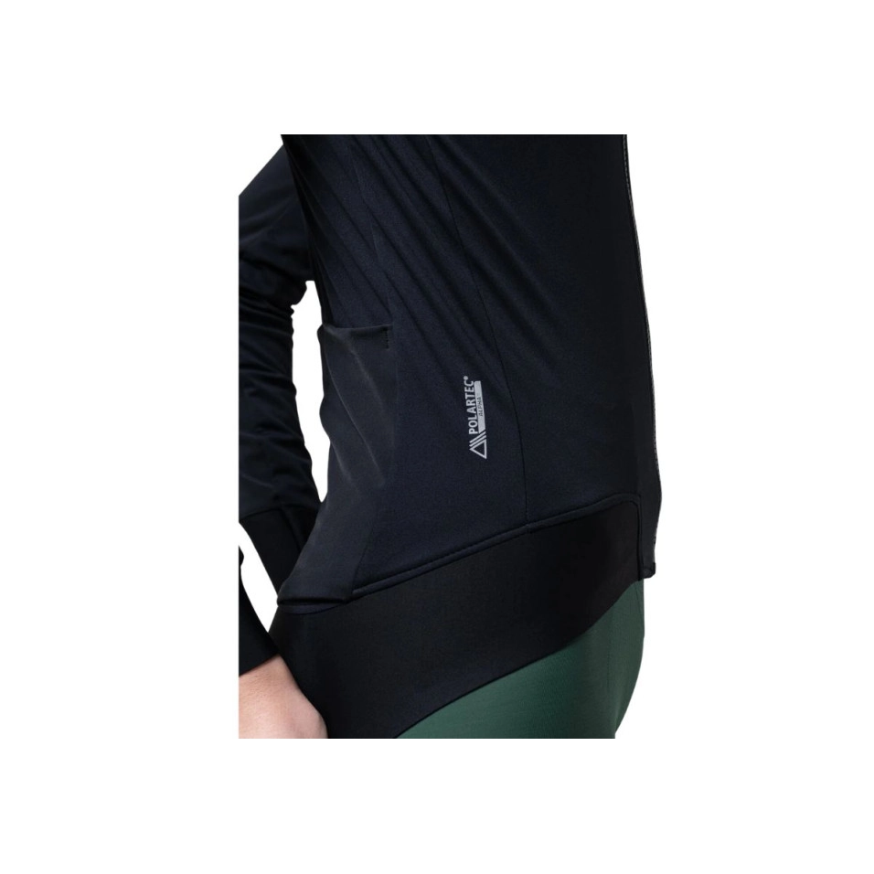 La veste thermique Gobik Armor Vanta 2.0 se distingue par la membrane Polartec® NeoShell® et l'isolation intérieure Polartec® Alpha®. Sa couche externe crée une barrière impénétrable contre la pluie et le vent, tandis que sa technologie intérieure régule magistralement la température, que ce soit à un rythme élevé ou calme, faisant de ce modèle le plus complet pour les temps froids et difficiles. DÉTAILS - Couche extérieure Polartec® Neoshell® imperméable et respirante. - Isolation intérieure Polartec® Alpha®. - Col montant double épaisseur. - Coutures scellées au niveau des épaules. - Double fermeture éclair frontale YKK Vislon® AquaGuard®. - Ouverture d'aération arrière dans la partie supérieure du dos. - Poignets élastiques réglables. - Poches arrières avec système GRS et système d'évacuation de l'eau. - Poches intérieures au niveau lombaire pour protéger les affaires ou les gants intermédiaires. - Taille élastique avec bande de silicone antidérapante. - Jupe arrière en néoprène. - Détails réfléchissants. TECHNOLOGIE La couche extérieure intègre la membrane Polartec® Neoshell®, le tissu imperméable le plus respirant au monde, avec un équilibre parfait pour le développement des activités physiques. Offre résistance aux intempéries et durabilité, tout en permettant un échange d'air dynamique et une gamme complète de mouvements. Pour l'isolation intérieure, on utilise du Polartec® Alpha®, un tissu conçu pour les forces spéciales EE.UU. , qui exigeaient une isolation supérieure avec une respirabilité optimale, dans des conditions de démarrage et d'arrêt continus au combat. Il combine des fibres hydrophobes avec un noyau en maille solide pour créer une circulation d'air active. Il est très léger, compressible et absorbe instantanément l'humidité générée par l'effort. La combinaison des deux couches parvient à disperser l’excès de chaleur et d’humidité tout en bloquant l’air froid et la pluie. Le col est conçu de la même manière, avec une pièce extérieure qui poursuit la structure de la veste, isolant de l'eau et du vent, tandis que la pièce intérieure garantit un ajustement parfait et un toucher très doux. Les coutures scellées au niveau des épaules empêchent l'eau de s'infiltrer et donnent au vêtement un look très personnel. La double fermeture éclair japonaise YKK permet de le placer dans deux positions, la première entièrement isolante, pour nous protéger autant que possible des éléments, et la seconde, ouvrant un soufflet interne en maille qui permet à l'air d'entrer lorsque nous avons besoin d'une ventilation supplémentaire. Une ouverture avec un canal intérieur est placée à l'arrière, qui canalise le flux d'air vers l'extérieur lorsque l'on utilise la deuxième position de la fermeture éclair, et extrait la chaleur résiduelle si l'on utilise la première. Les poignets hautement élastiques sont conçus pour l'utilisation de gants, en s'y attachant pour bloquer les courants d'air et obtenir une adaptation parfaite à notre poignet. Nous disposons d'une grande capacité de chargement, grâce à ses trois poches extérieures avec système GRS et ses deux intérieures, qui nous permettront de protéger nos affaires de la pluie ou de porter des gants intermédiaires, au cas où la température s'améliorerait. Un système d'évacuation d'eau est ajouté aux poches extérieures, constitué d'un soufflet en partie basse. La jupe arrière en néoprène offrira une protection supplémentaire contre les éclaboussures de la roue arrière. Pour améliorer la visibilité, il dispose de réflecteurs sur les bras et sur la jupe arrière. |