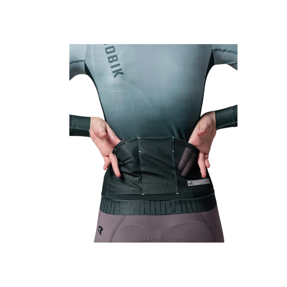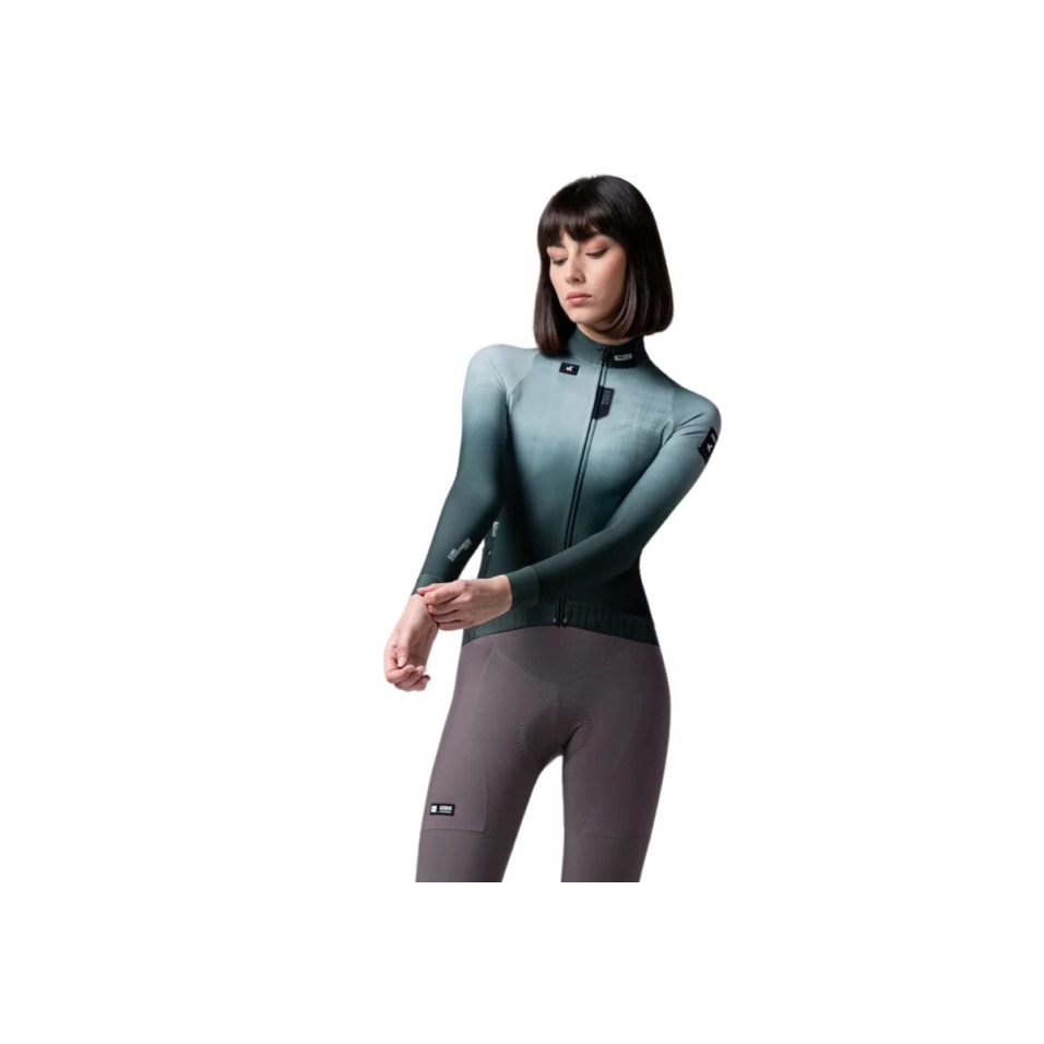 Continua a pedalare senza prendere freddo quando le temperature si raffreddano con le maglie a maniche lunghe proposte da Escapa . La maglia a maniche lunghe da donna Gobik Hyder con il suo tessuto tecnico in micropile trattiene il calore corporeo. Si adatta in modo ottimale al nostro corpo, favorendo l'aerodinamica, ma con spazio sufficiente per poter utilizzare uno strato di base, se la temperatura lo richiede. I pannelli in rete sotto le ascelle offrono una ventilazione extra, aiutando a eliminare il calore residuo. Le maniche leggere e flessibili con polsini tagliati al laser riducono la resistenza al vento e si infilano facilmente in una giacca.