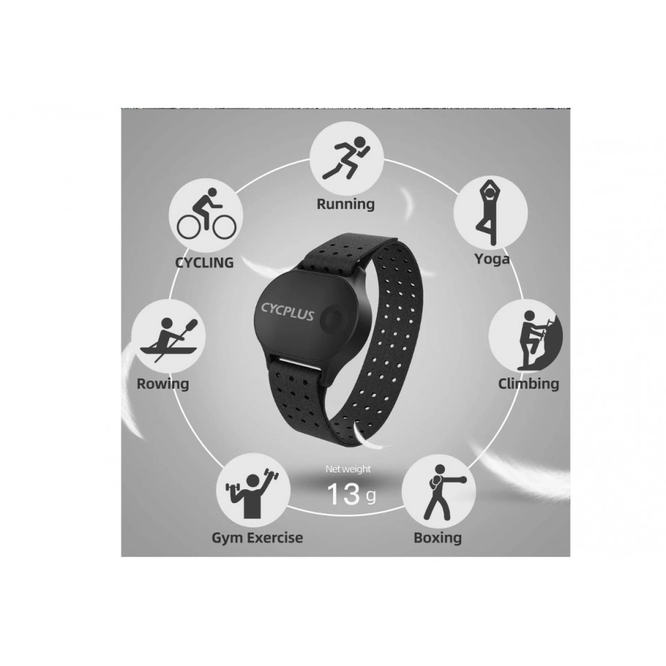 IMPERMEABILE E TRASPIRANTE Il monitor della frequenza cardiaca CYCPLUS adotta un design resistente all'acqua di grado IPX6, che soddisfa le vostre esigenze fisiche quotidiane sia in ambienti interni che esterni. REGISTRAZIONE DEI DATI AD ALTA PRECISIONE Il monitor della frequenza cardiaca con fascia elastica ipoallergenica si adatta perfettamente al vostro avambraccio o braccio registrando la vostra frequenza cardiaca in tempo reale. BATTERIA AD ALTA DURATA Utilizza una batteria al litio ricaricabile che consente di utilizzarlo ininterrottamente per più di 20 ore prima di doverlo ricaricare di nuovo. CARATTERISTICHE * Connessione Bluetooth 4.0/ANT+ |