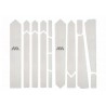 A differenza dei nostri protettori con motivi grafici, questo modello è completamente trasparente, offrendo uno scudo trasparente che permette al design originale della tua moto di brillare attraverso di esso. È perfetto per coloro che desiderano la massima protezione con la minima interferenza estetica. Il nostro Total Frame Guard utilizza un materiale sottile e leggero appositamente progettato per le esigenze di protezione delle biciclette da gravel e strada. Protegge efficacemente il telaio dall'usura dei cavi, dall'abrasione delle borse e delle cinghie, dai graffi e dai piccoli urti, mantenendo la bicicletta in condizioni perfette uscita dopo uscita. Protezione completa: Copre l'intero telaio, proteggendolo da segni, scheggiature e usura causati da cavi, borse e cinghie. Design discreto: Il protettore trasparente e chiaro conserva l'aspetto originale della tua bicicletta. Facile da installare: Progettato per un montaggio universale su telai gravel e da strada. Qualità garantita: Progettati e realizzati a Barcellona, i nostri protettori utilizzano materiali di qualità automobilistica che non ingialliscono nel tempo. Specifiche: Sistema di protezione universale composto da 18 pezzi per il triangolo principale, i tiranti, la forcella e le aree in cui il pneumatico si incastra saldamente. Resistenza agli urti e all'abrasione: Il PVC semirigido da 200 micron con microesagoni fornisce una protezione robusta. Leggero: Pesa solo 55 grammi (1,94 once). Finitura opaca: Materiale semilucido dal piacevole aspetto e al tatto. Facile da installare: Viene fornito con 12 pezzi per un sistema di protezione universale. |