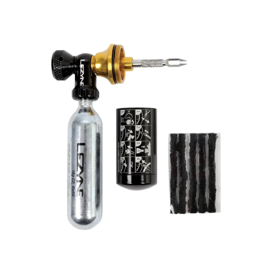 Il Kit Lezyne Adattatore CO2 Tubeless Blaster è un innovativo regolatore di CO2 2 in 1 per il ciclismo + un kit di riparazione per pneumatici tubeless che gonfia e sigilla contemporaneamente i pneumatici senza camera d'aria.
