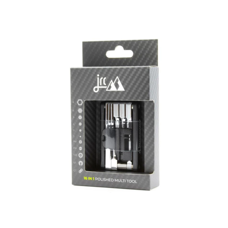 Il Multitool JRC 16 Funzioni 16 in 1, leggero e dal design compatto, si ripone perfettamente nella tasca del tuo maglia o nella borsa e offre numerose funzioni, progettate per consentirti di tornare rapidamente su strada o sul sentiero quando accade l'imprevisto.
