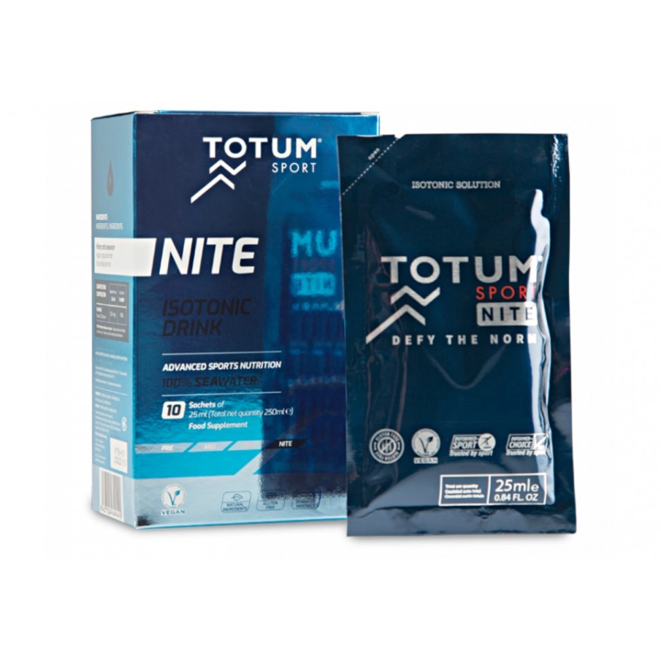 Bevanda Isotonica Totum Nite per gli sportivi, preparata con acqua di mare diluita alla concentrazione minerale isotonica. Recupero post-allenamento 100% naturale ad assorbimento immediato che favorisce il processo di digestione.