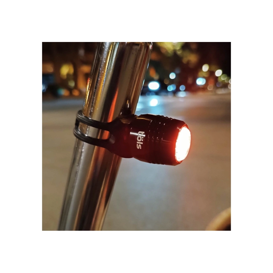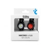 Il Kit luci Tols Micro USB Lights è composto da un faro anteriore da 10 lumen e un faro posteriore da 5 lumen, ricaricabili tramite USB.