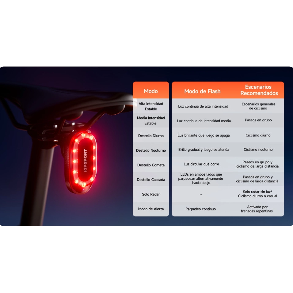 La luce posteriore IGPSport SR Mini con Radar , che presentiamo a Escapa è progettata per migliorare la sicurezza dei ciclisti su strada. La sua tecnologia consente di rilevare veicoli fino a 160 metri di distanza, identificare fino a 8 bersagli contemporaneamente e inviare avvisi visivi e acustici a un ciclocomputer compatibile. Inoltre, la sua luce si intensifica automaticamente quando rileva una frenata improvvisa, migliorando la visibilità in situazioni critiche.