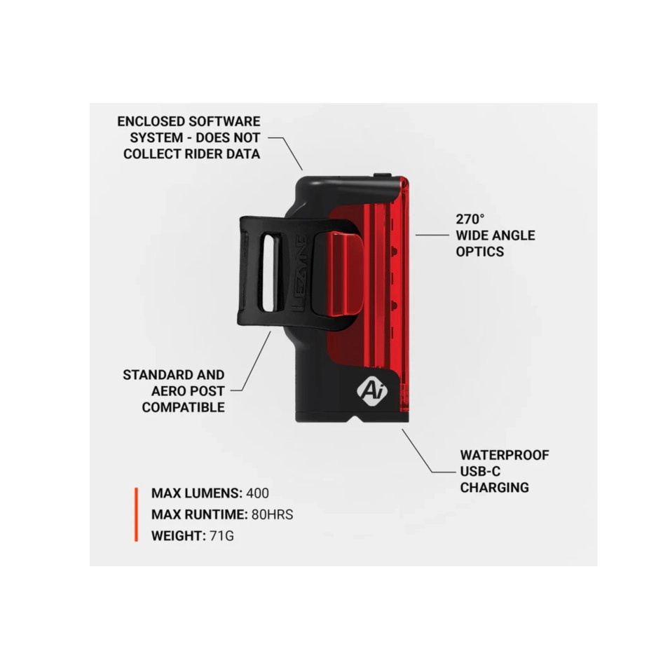 Noi di Escapa vi presentiamo il futuro della tecnologia di illuminazione per biciclette: Ai Alert. Combiniamo l'intelligenza artificiale con le luci posteriori ALERT las per offrirti la luce di stop più precisa sul mercato. La luce posteriore Lezyne Strip Pro Ai Alert 400+ rileva automaticamente le frenate e commuta in modo intelligente la modalità di uscita su Active Alert, una modalità "luce freno" a lampeggio rapido da 150 lumen; segnalare la decelerazione, comunicare in modo efficace le proprie azioni al traffico e agli altri ciclisti, migliorando la visibilità e la sicurezza dei ciclisti.