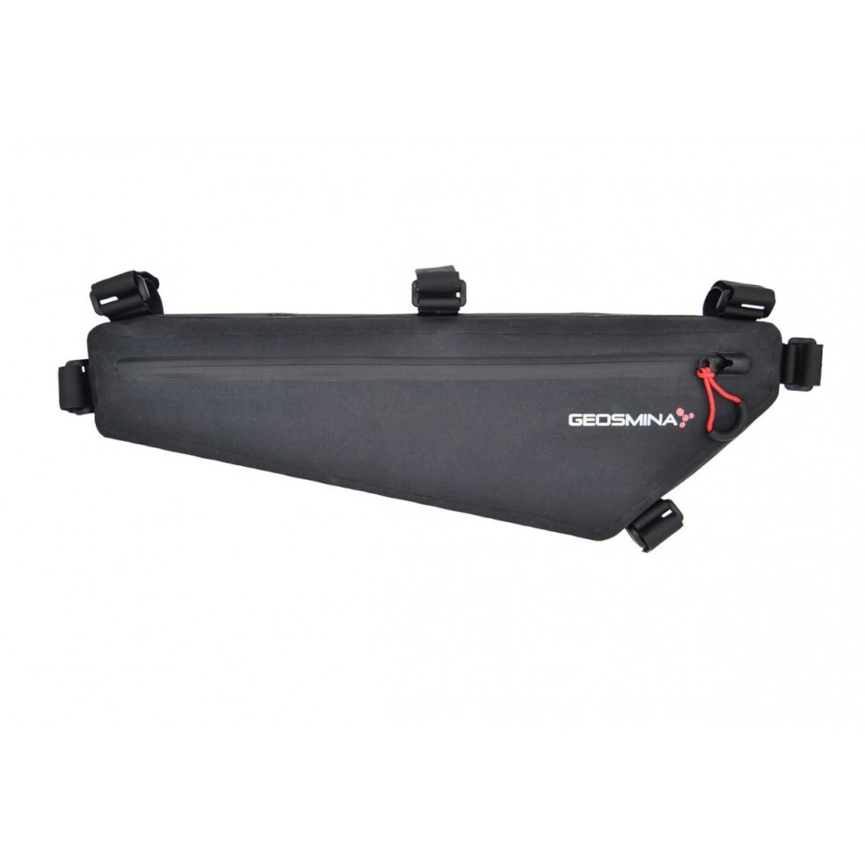 La Borsa Telaio Geosmina Medium Frame Bag Gravel è realizzata in Nylon 600D e Hypalon, con cuciture sigillate ad alta frequenza. Questo Nylon è completamente impermeabile e ha un trattamento esterno in PU (Poliuretano) che respinge l'acqua e fa sì che la borsa si asciughi rapidamente a contatto con l'aria. La Borsa Telaio Geosmina Medium Frame Bag Gravel ha uno strato di TPU (Poliuretano Termoplastico) che insieme alle cuciture sigillate, rende la borsa completamente stagna.