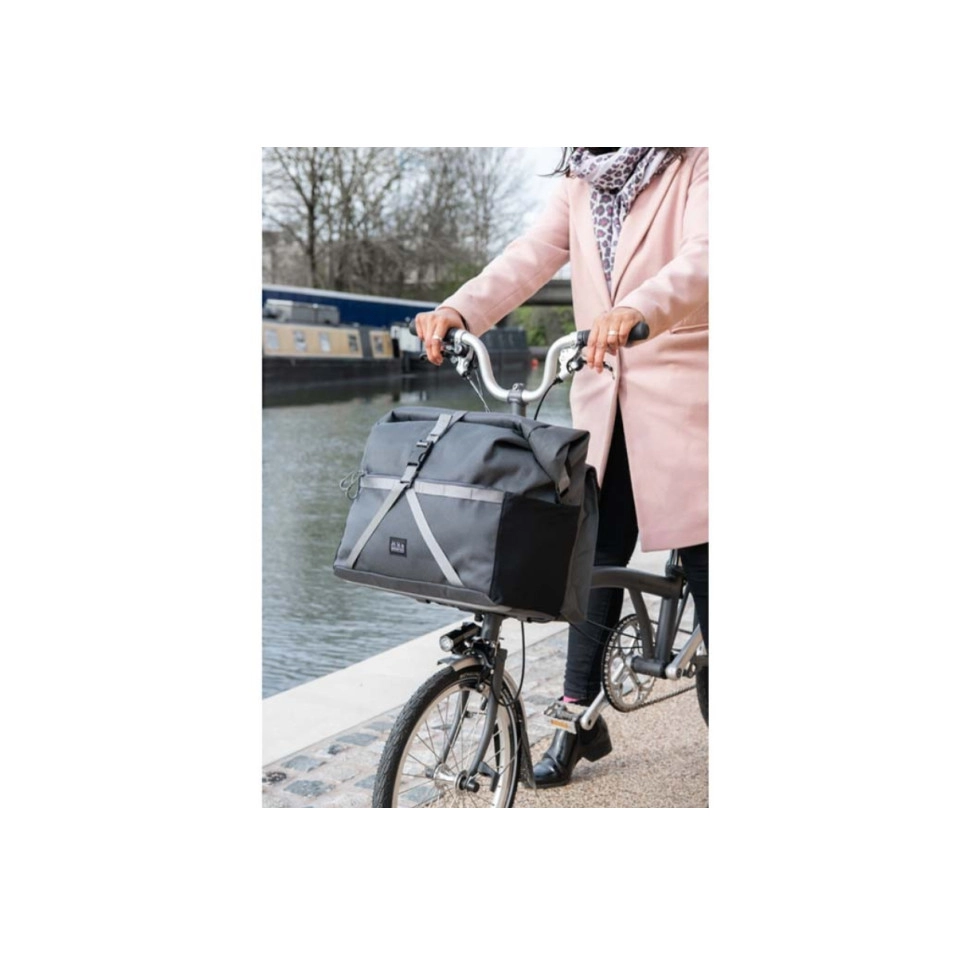La Borsa Brompton Borough Roll Top L è una delle opzioni di bagaglio più grandi di Brompton, ideale per i viaggi, quindi se è la capacità che stai cercando. La Borsa Brompton Borough Roll Top L viene fornita completa di telaio (rimovibile) da fissare al blocco di supporto anteriore. Questa borsa di Borough potrebbe essere quella che stai cercando! Con un design più moderno e materiali e finiture migliorati rispetto ai suoi predecessori (la borsa da viaggio, il T bag 1 e il T bag 2), il distretto offre più spazio di archiviazione rispetto a qualsiasi altra borsa Brompton. Dispone di un sistema arrotolabile con clip in nylon resistenti per la chiusura. Ci sono due tasche sul retro: una contiene un vano delle dimensioni di una bottiglia d'acqua. Viene fornita con una tracolla e una copertura impermeabile ad alta visibilità. Le opzioni di bagaglio anteriore di Brompton si basano sul 'Sistema di trasporto anteriore' di Brompton.