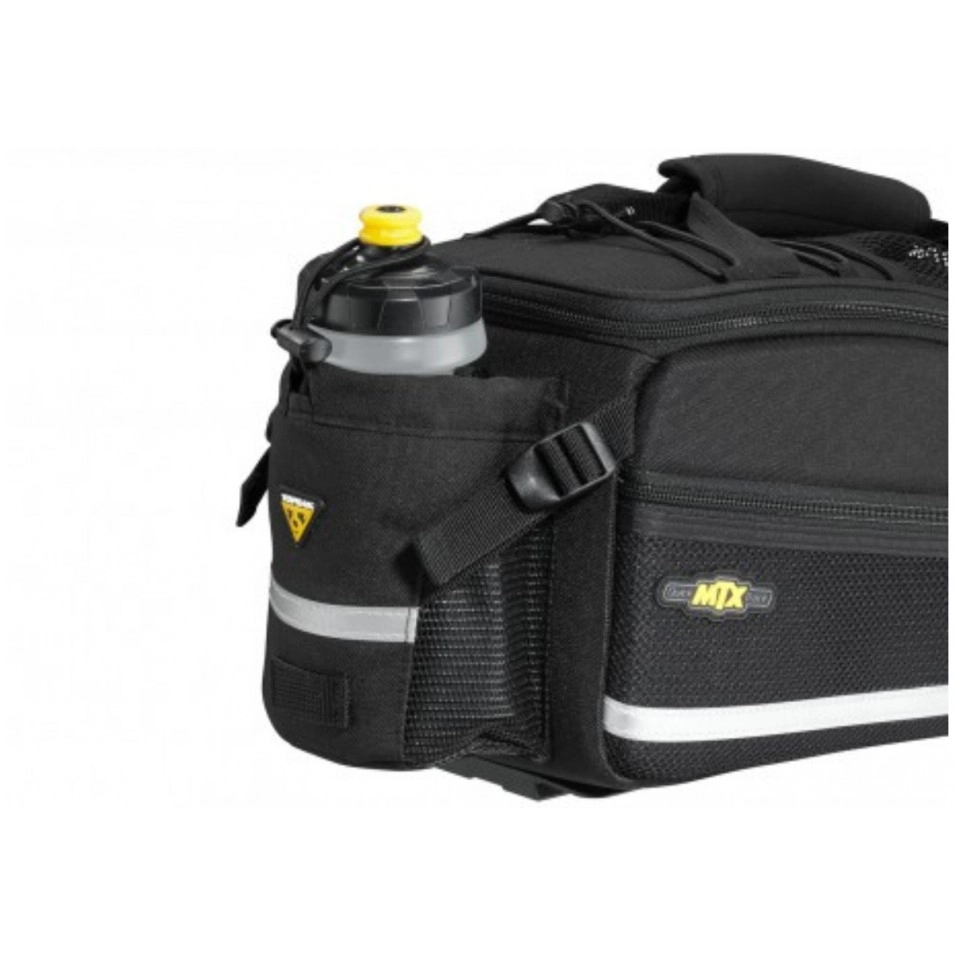 Escapa ti porta il marchio Topeak specializzato nella produzione di attrezzi, accessori e componenti per rendere la nostra vita più semplice. La Borsa Topeak MTX EX Portapacchi combina resistenza e flessibilità. È completamente impermeabile e compatibile con tutti i portapacchi MTX QuickTrack Topeak. Ha un vano principale diviso, due tasche laterali e una tasca posteriore per inserire una borraccia. Dispone di bande riflettenti per migliorare la visibilità. Include una tracolla per portarla a tracolla e una copertura per la pioggia venduta separatamente.