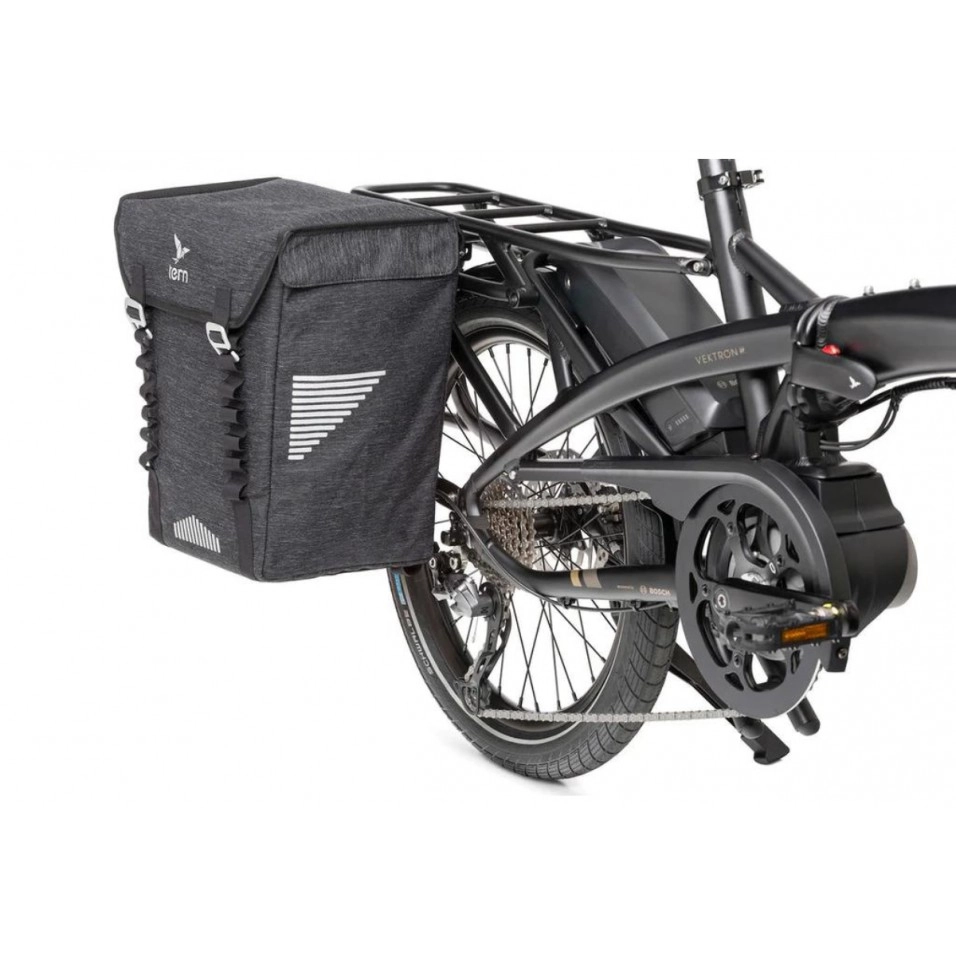 La borsa laterale Tern Bucketload Vektron da 24 litri è come il portapacchi per la tua bici. È progettato per essere posizionato sullo scaffale e mantenere il carico pulito e asciutto. Puoi portare con te l'impermeabile, il lucchetto o dei vestiti di ricambio per quando arrivi in ufficio. Ha abbastanza capacità per trasportare uno zaino, un pacchetto di pannolini o una borsa della spesa. E se hai bisogno di spazio extra, srotola la parte superiore. Se non è necessario, si piega completamente e non dà fastidio.