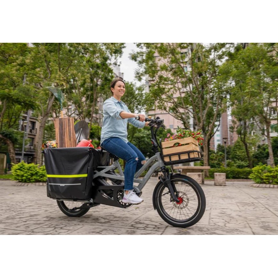 Se combinate con Clubhouse+™ e Sidekick™ Wide Deck, le borse laterali Tern Storm Box 160 trasformano la parte posteriore della GSD in un enorme cubo protetto dagli elementi. Due coperchi resistenti agli agenti atmosferici ti consentono di passare facilmente dal trasporto di bambini al trasporto di merci. Il coperchio del carico impermeabile e con serratura protegge i tuoi oggetti dalla pioggia e da sguardi indiscreti, mentre il coperchio del bambino si regola per mantenere i più piccoli al caldo e comodi, anche nelle giornate di maltempo.