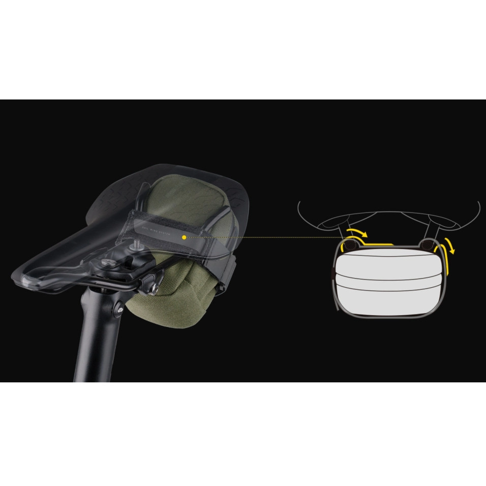 La borsa da sella Topeak Elementa Seatbag M presentata da Escapa ha un design ultracompatto ed è nascosta sotto la sella con una cinghia di chiusura autoadesiva per trasportare camere d'aria e staccabili. Il tessuto antiscivolo integrato garantisce sicurezza durante il montaggio.