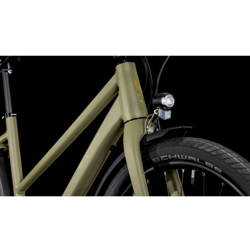 Escapa porta la bicicletta Cube Hyde Pro FE Trapeze 25 , una bicicletta urbana progettata per le donne, con un telaio trapezoidale che facilita il montaggio e lo smontaggio. Perfetto per gli spostamenti quotidiani, offre una guida comoda e sicura grazie ai suoi componenti di alta qualità e all'equipaggiamento completo.
