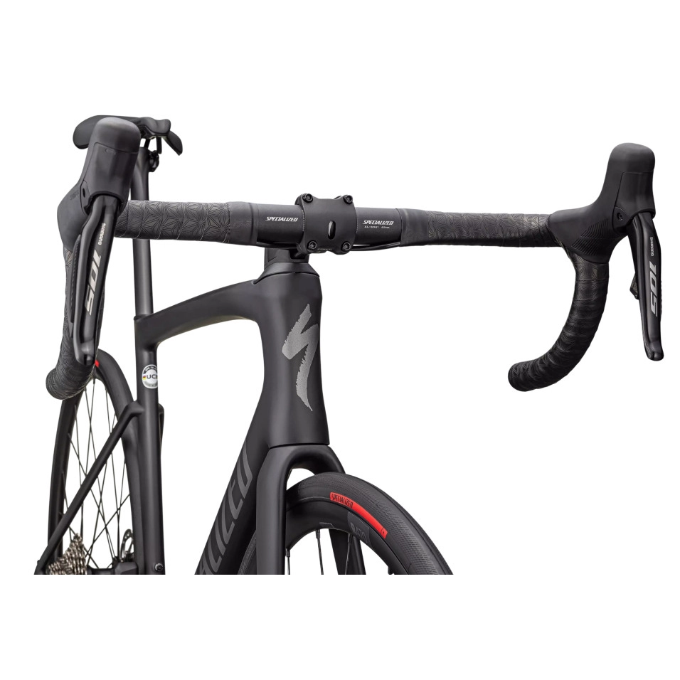 Dotata del gruppo Shimano 105 Di2 a 12 velocità per portare il cambio elettronico las masse, insieme a pneumatici ad alta scorrevolezza su pneumatici Turbo Pro da 700x26 mm, questa nuova Tarmac offre prestazioni a un prezzo più conveniente.