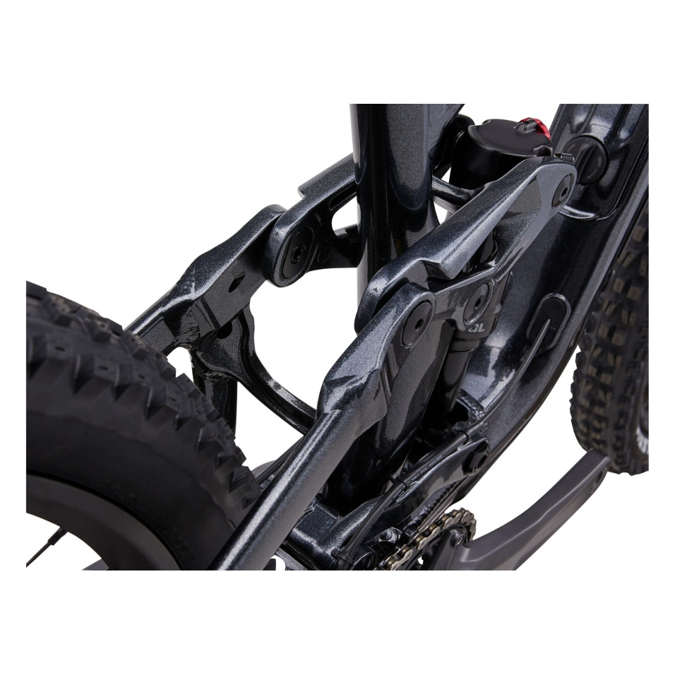 | Grafico ALUXX SL-grade aluminum front and rear triangles, 140mm Maestro Suspension, flip chip Maestro 3, flip chip headset, integrated down tube storage |