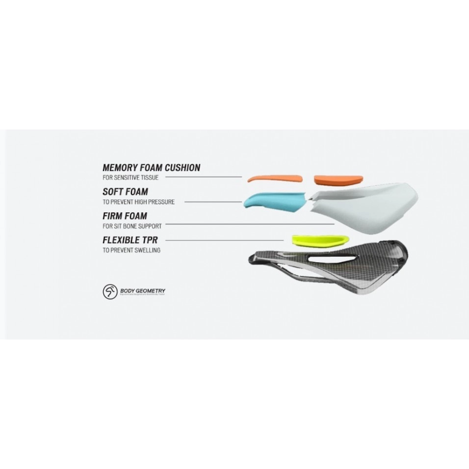 Il design brevettato Body Geometry è stato testato in laboratorio per garantire il flusso di sangue alle arterie sensibili. L'innovativa tecnologia Mimic utilizza materiali multistrato per mantenere l'equilibrio e ridurre al minimo il gonfiore nei tessuti molli. La struttura in fibra di carbonio FACT è progettata per offrire supporto e comfort durante la guida. I binari in carbonio FACT sono ultraleggeri, resistenti e sovradimensionati. Imbottitura di livello II: schiuma a media densità per una sensazione di bicicletta con un'ammortizzazione aggiuntiva. I supporti compatibili con SWAT™ modellati sulla base della sella consentono soluzioni di stoccaggio eleganti e integrate. |